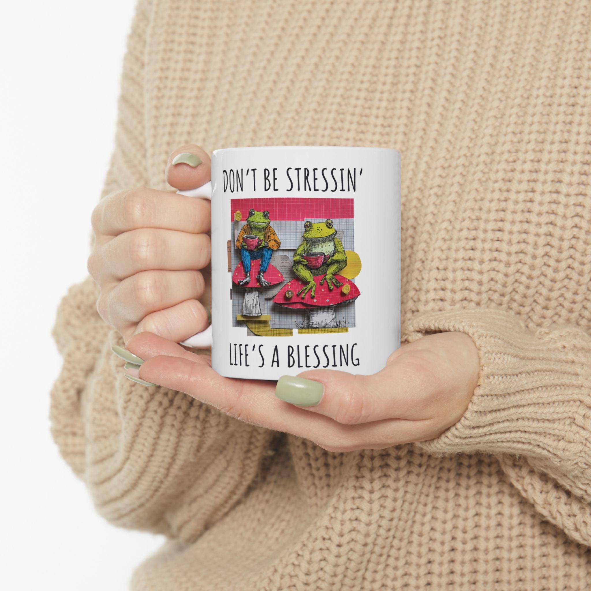 Colorful Mushroom Frog Coffee Mug, Positive Quote, Hippie Quote Gift Idea, Cottagecore Froggy Mug, Cute Novelty Gift, Mr Toad Mug