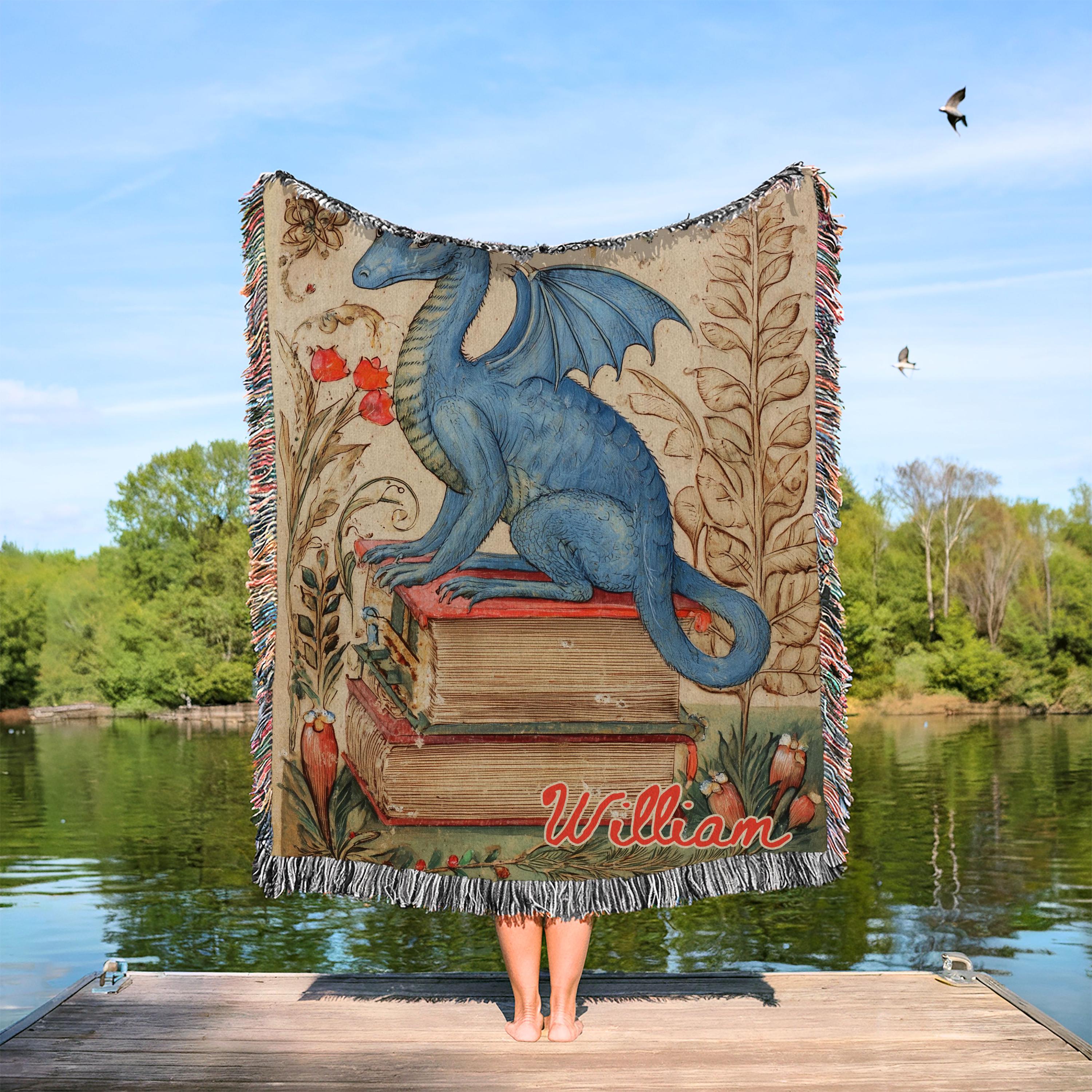 Personalized Folklore Dragon Woven Blanket | Medieval Aesthetic, Fairytale Inspired Wall Art, Cottagecore Style Fairycore Woven Tapestry