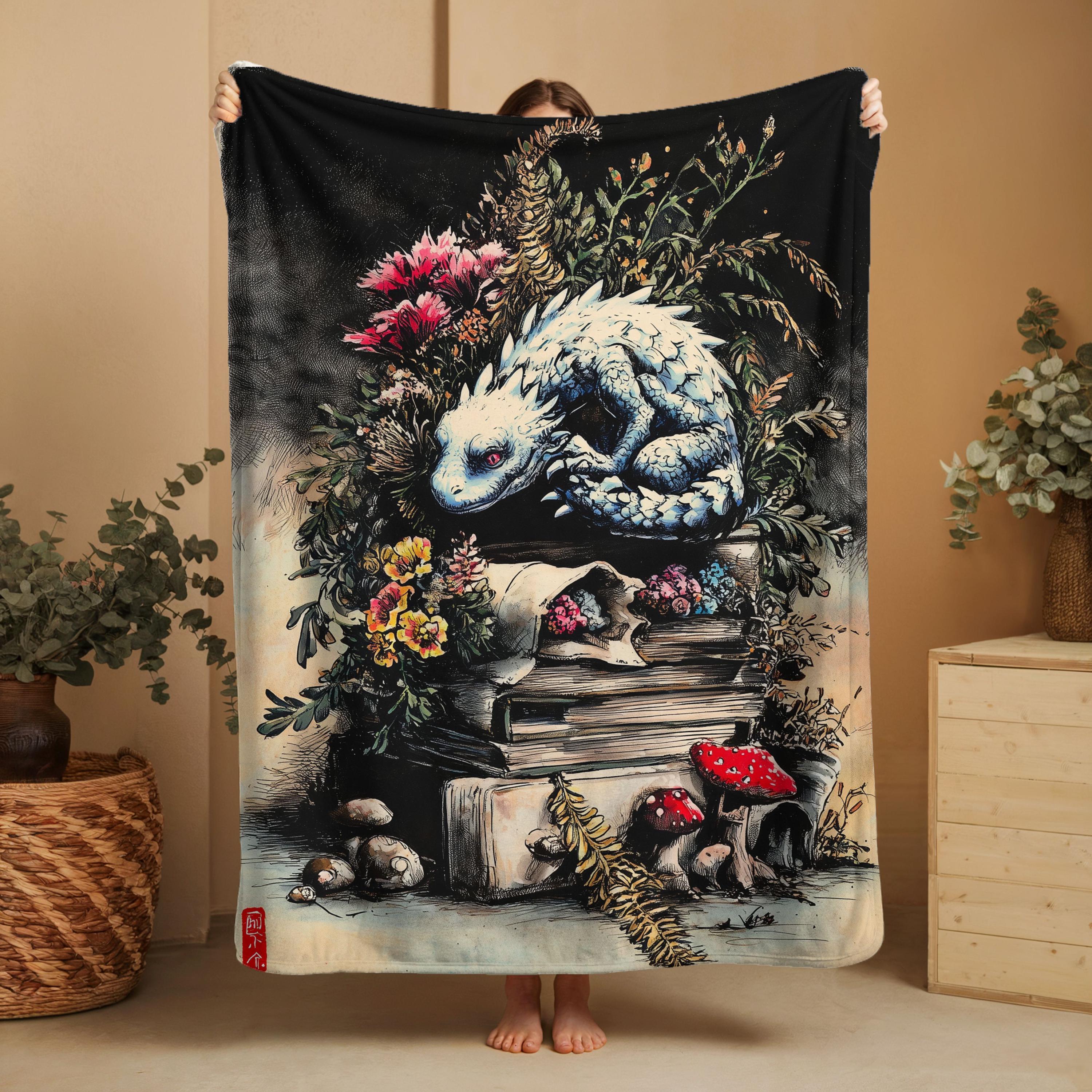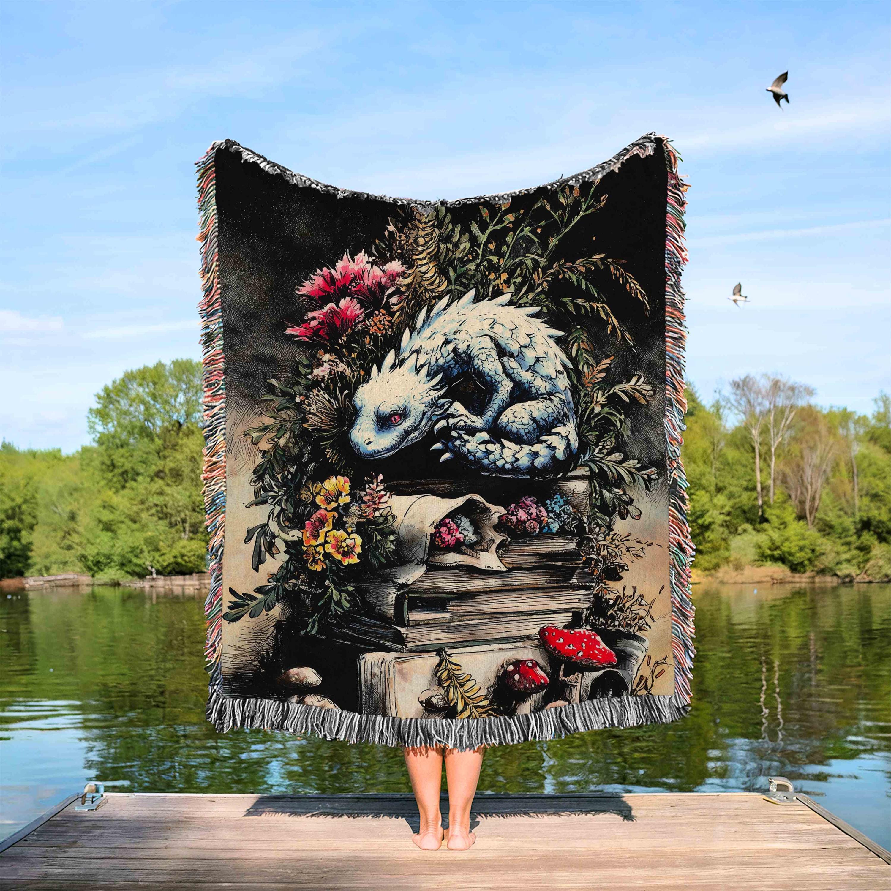 Bookish Fantasy Dragon Folklore Blankets and woven throw tapestry for a reader