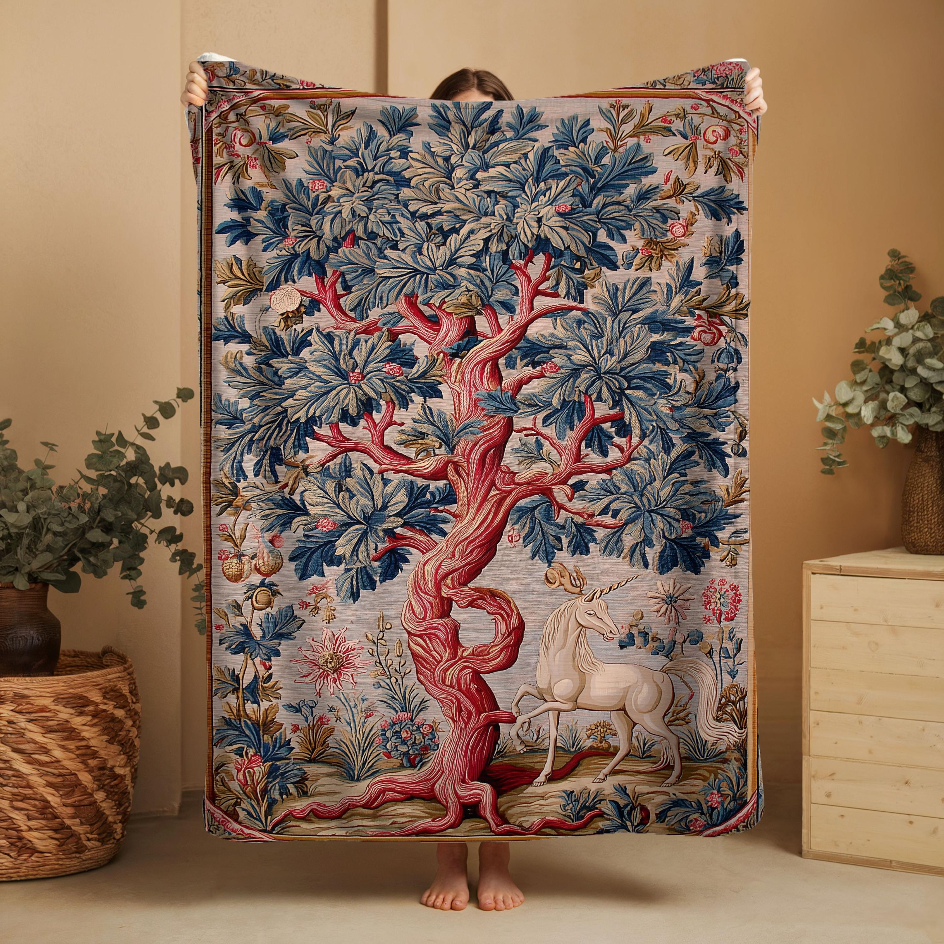 Unicorn is found Blanket Woven | Fairytale Aesthetic Nursery Decor, Mystical Tapestry Bedroom Tapestry Unicorn, Medieval Tapestry