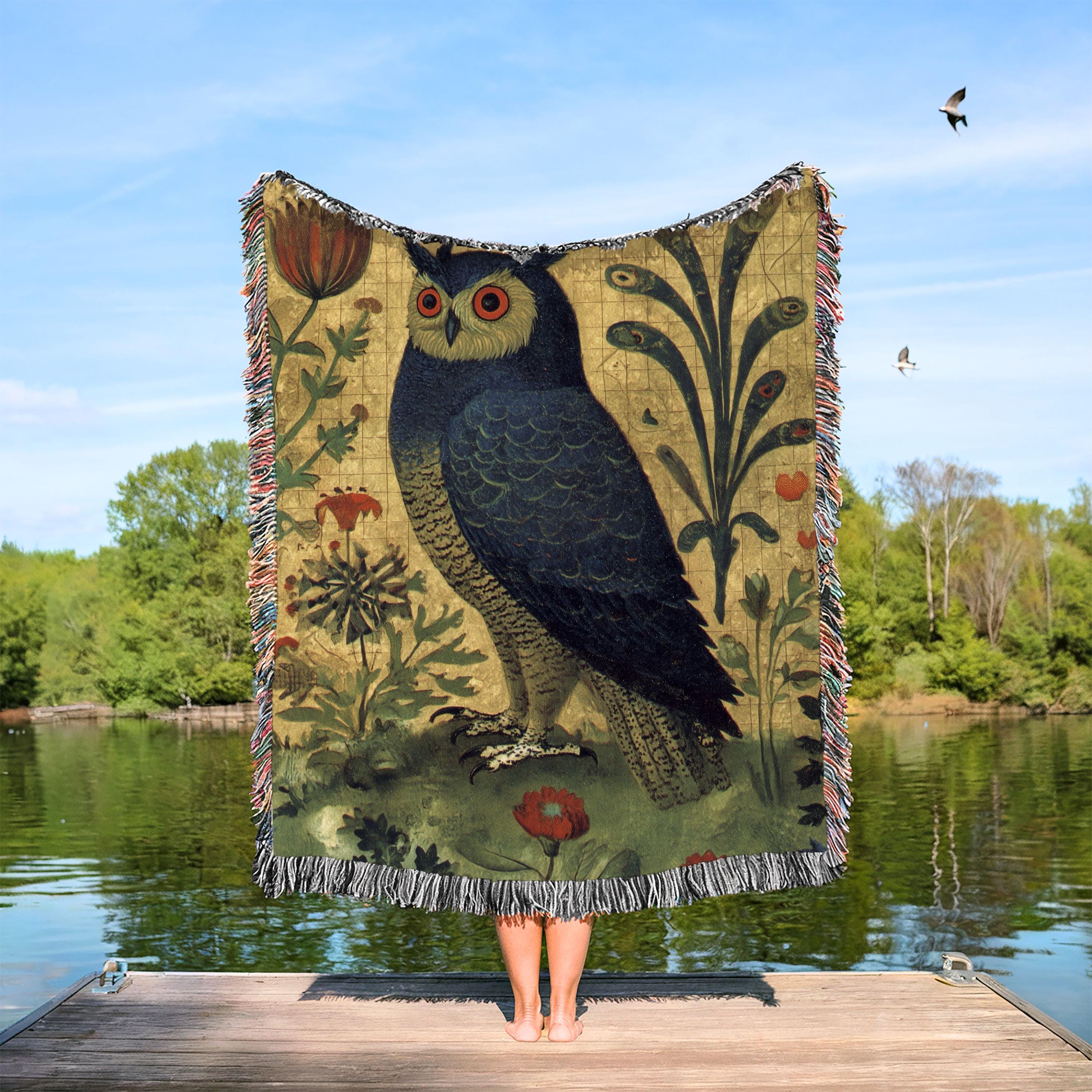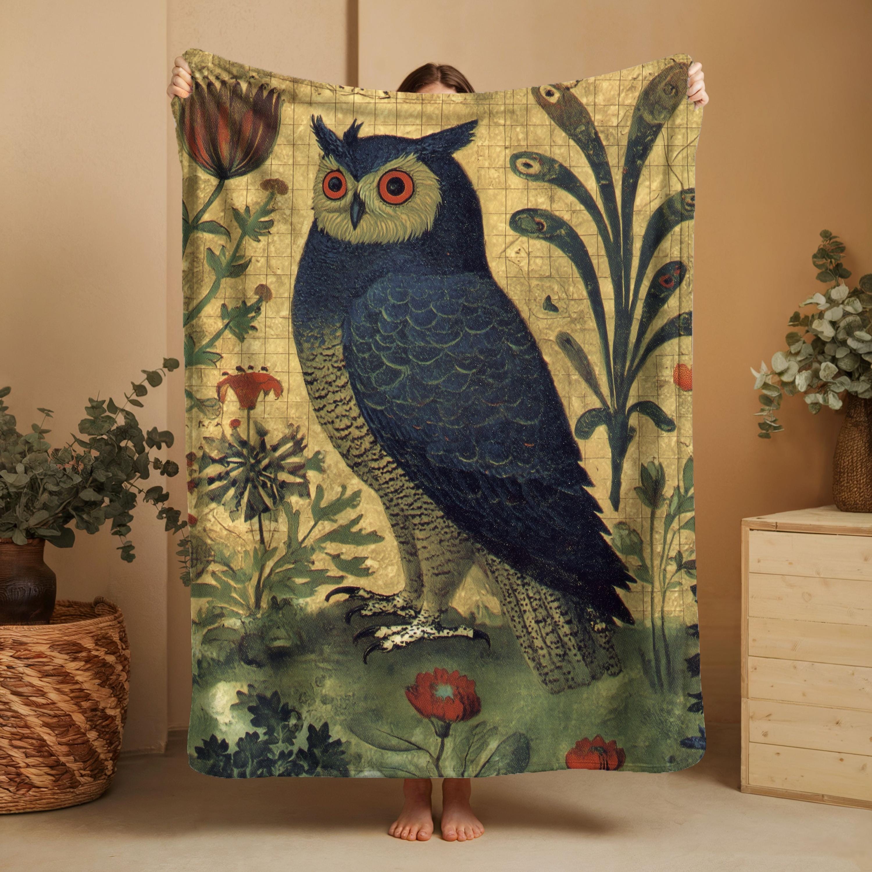 Owl Woven Blanket, Boho Owl Lover Gift Throw, Tapestry Gift for Owl Lovers, Owl Bedroom Decor, Bird Nerd Blanket, Medieval Decor