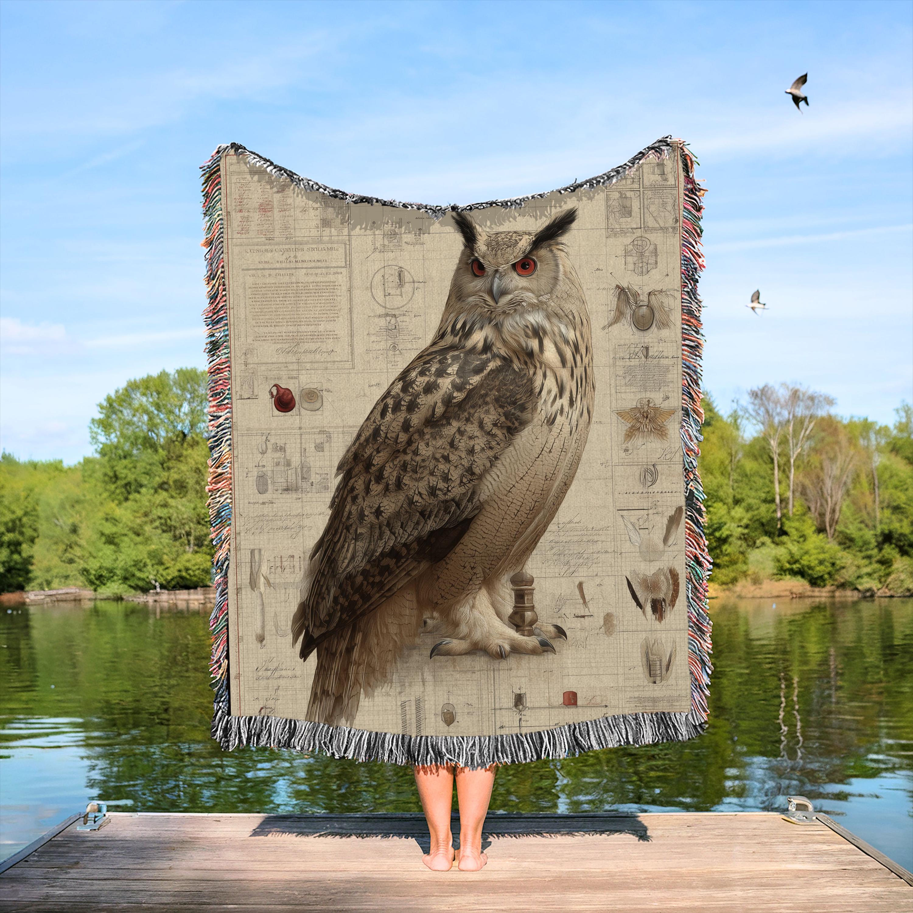 Bird Nerd Tapestry, Owl Woven Blanket, Boho Owl Lover Gift Throw, Tapestry Gift for Owl Lovers, Owl Bedroom Decor, Medieval Decor