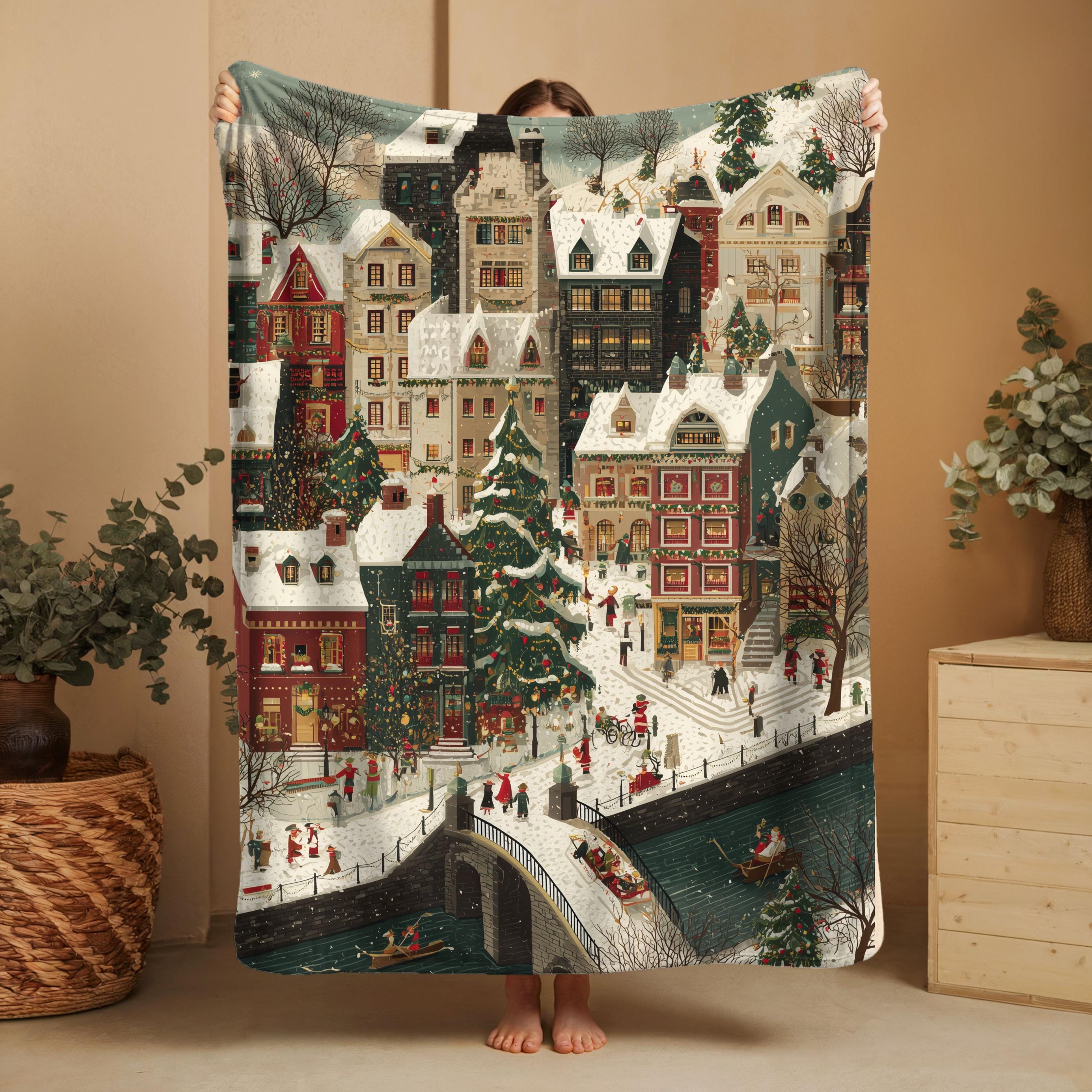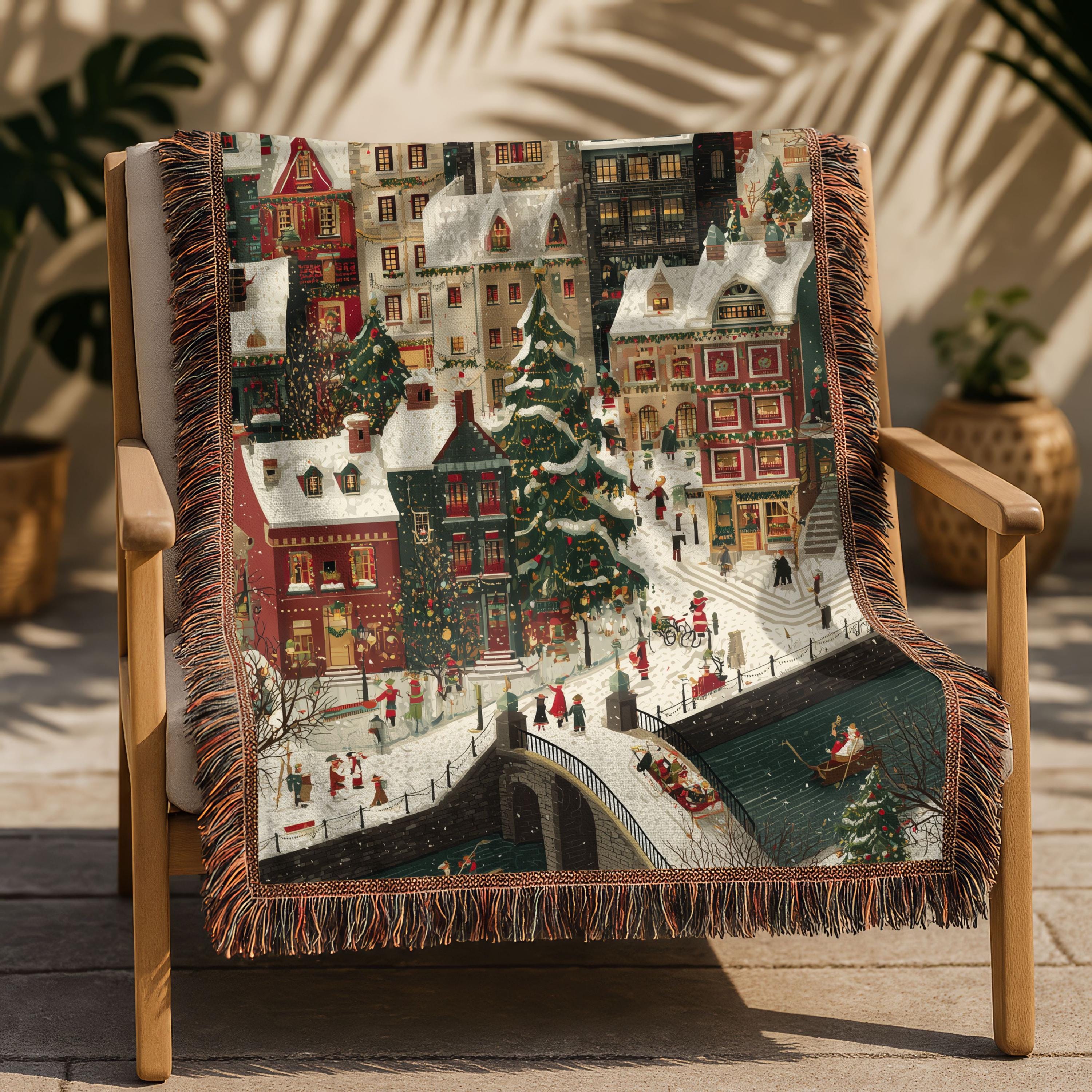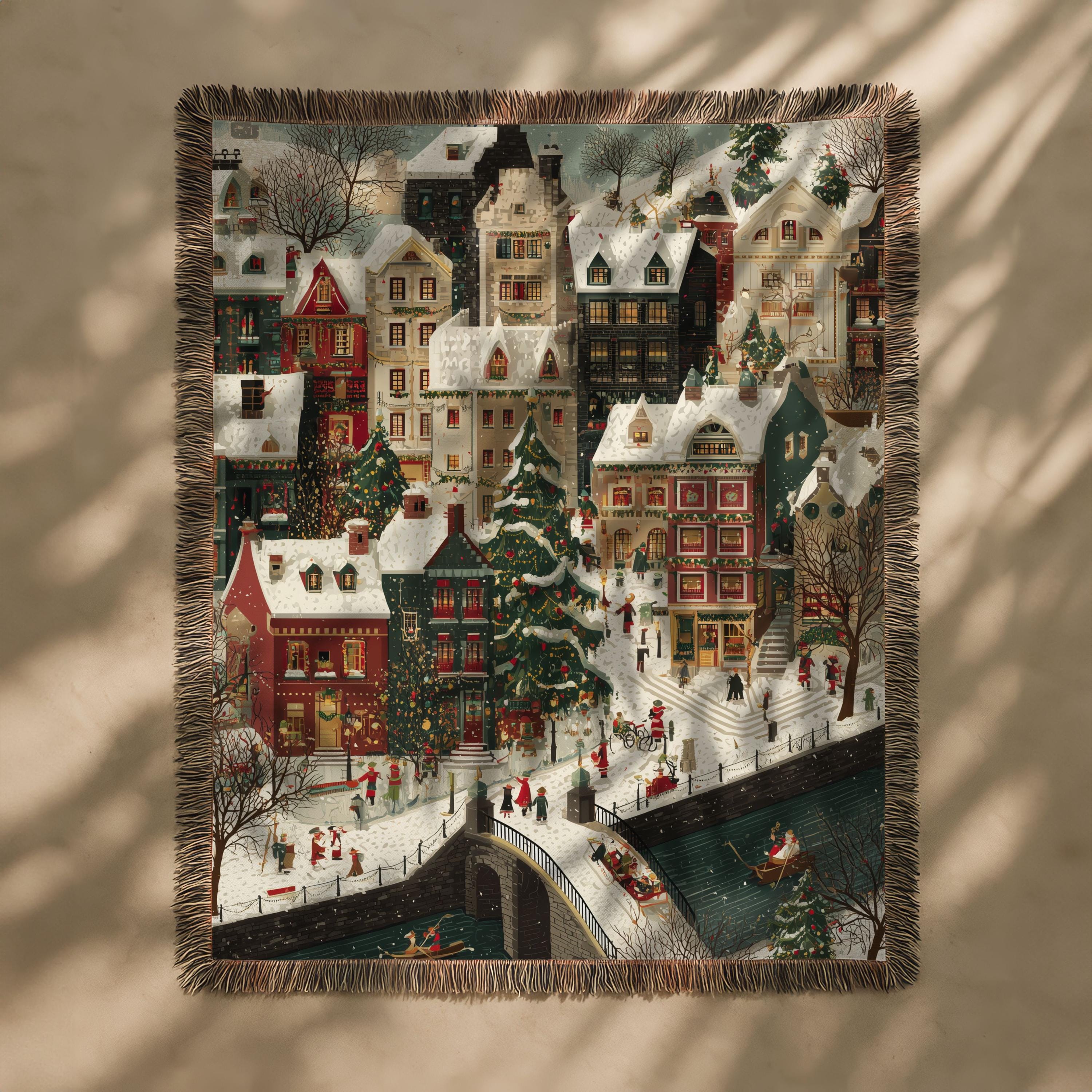 Christmas Village Woven Blanket, Cozy Winter Houses Throw, Nordic Tapestry, Holiday Tapestry Blanket for Xmas Home Decor, Xmas Gift