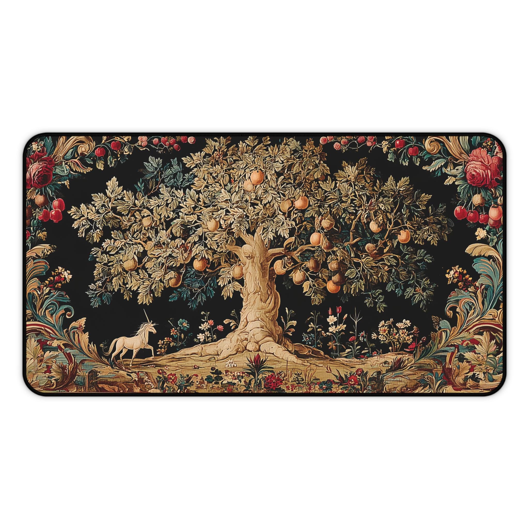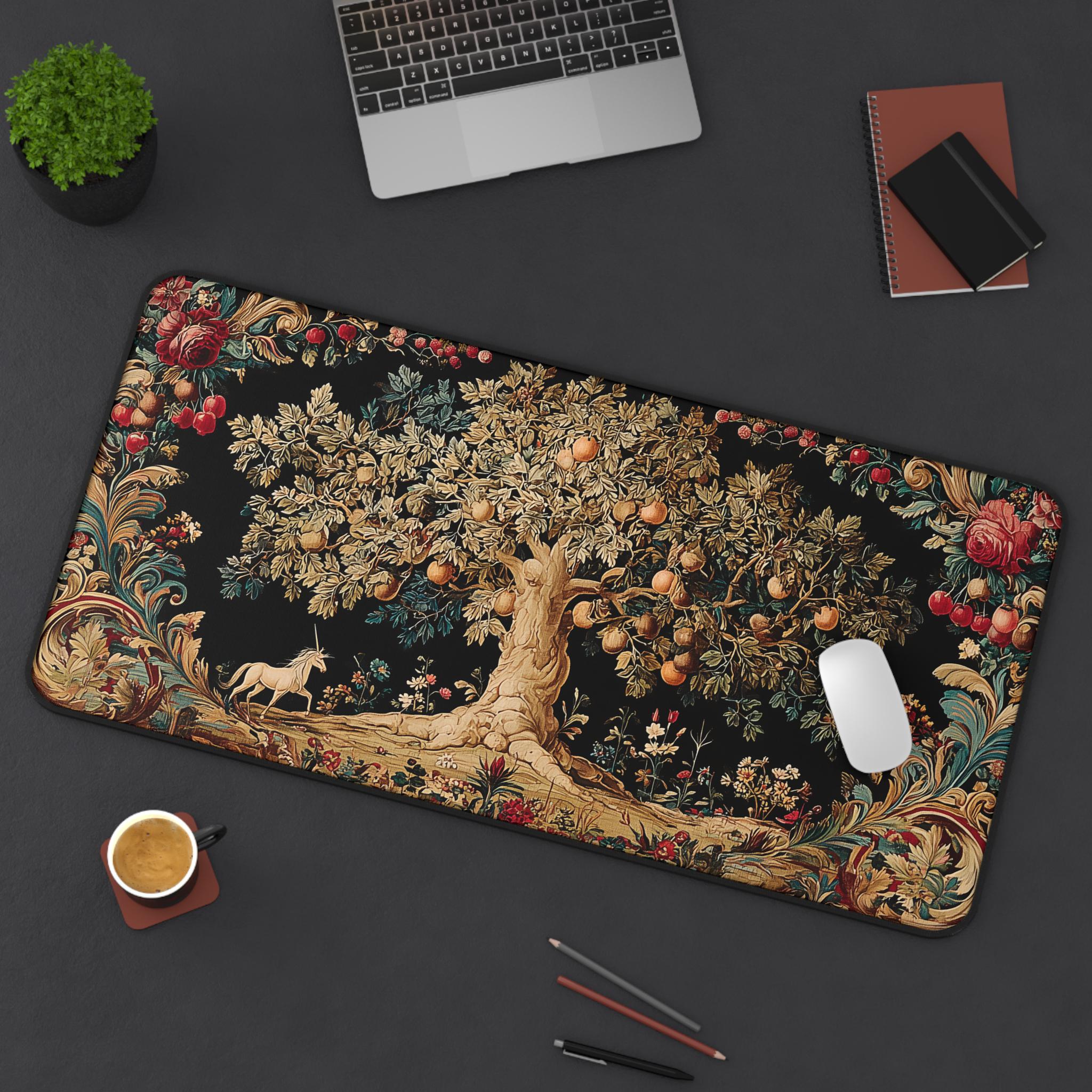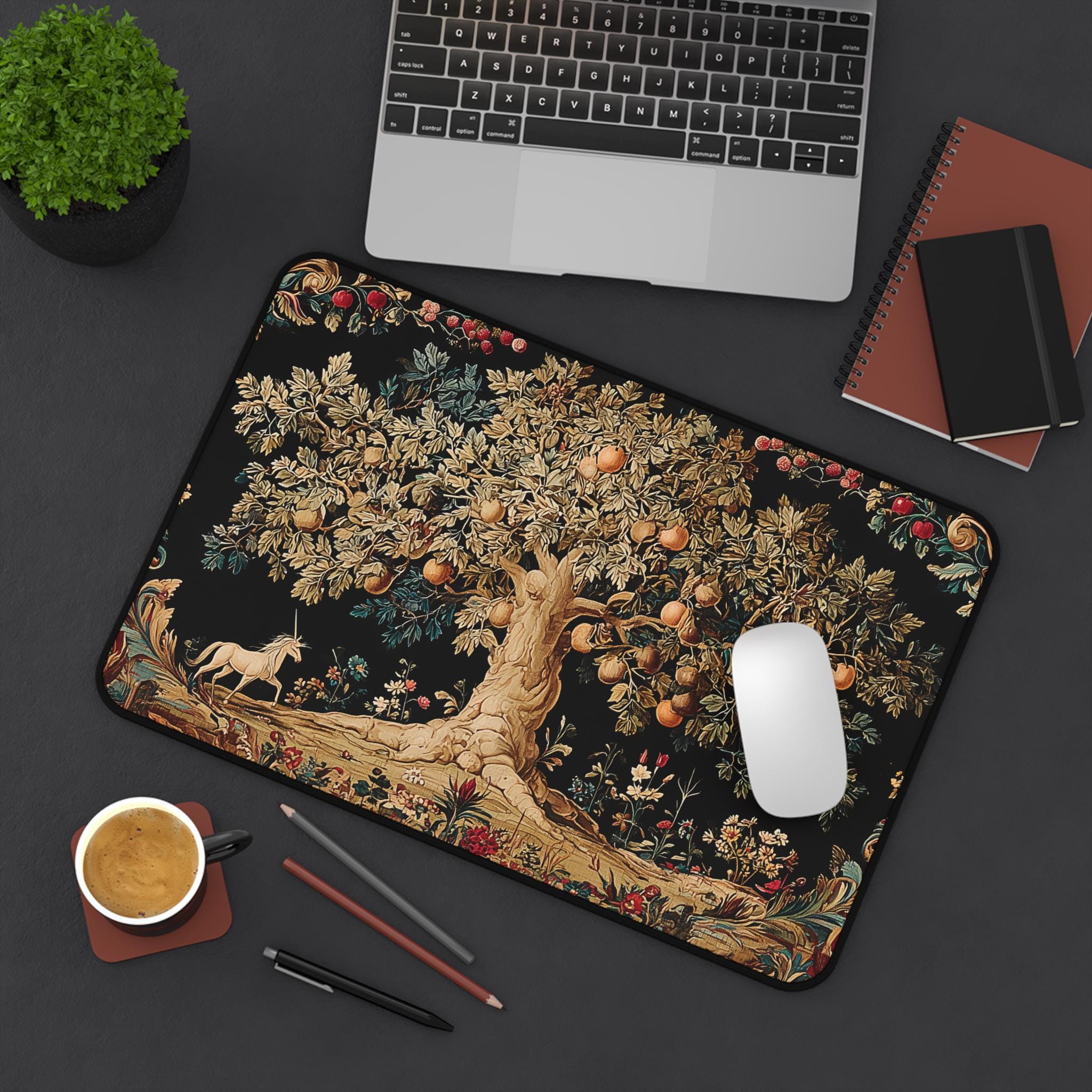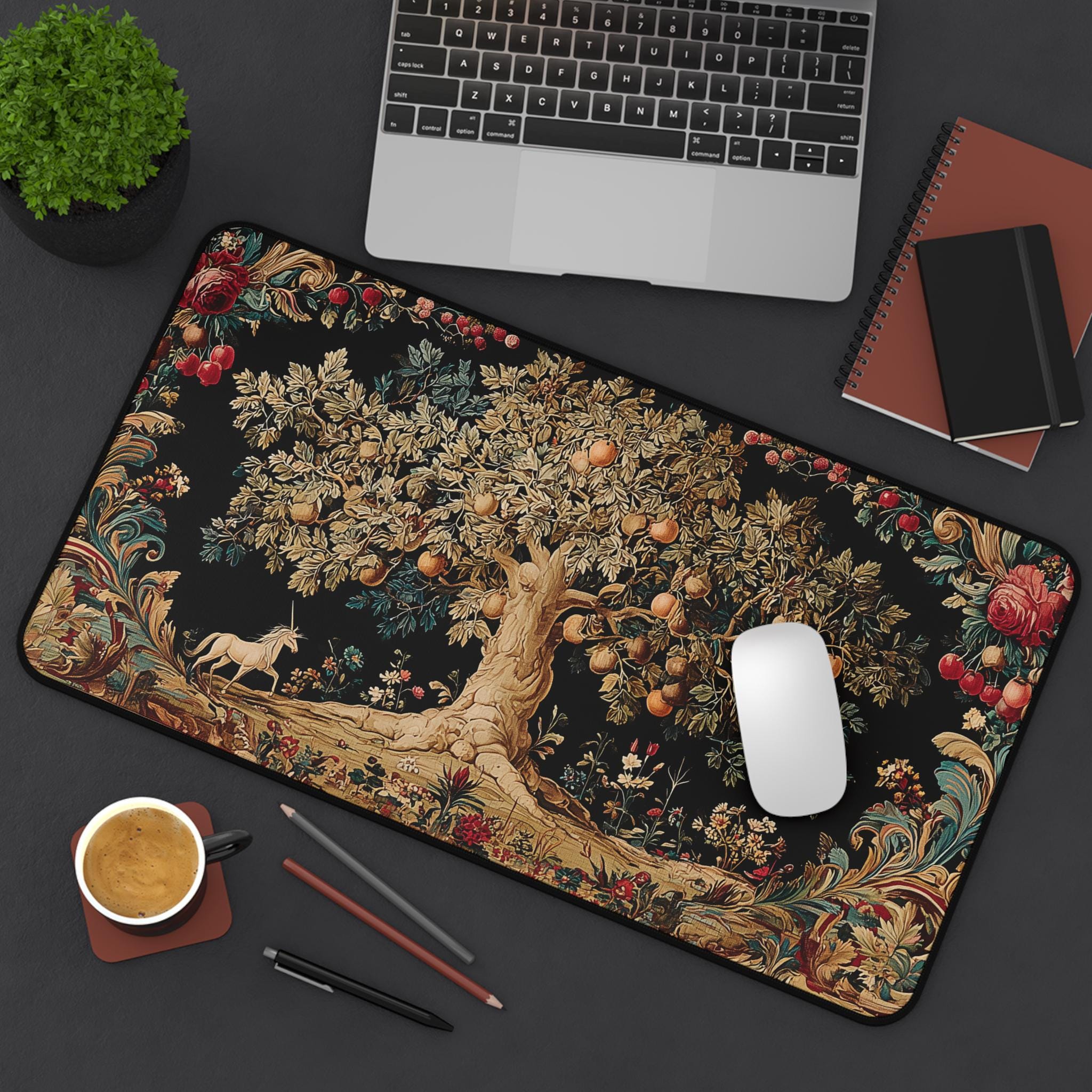 Tree of Life Deskmat • Fantasy Gaming Mouse Pad • Unicorn Art Desk Pad • Cottagecore Office Decor • Mythical Botanical Workspace Mat