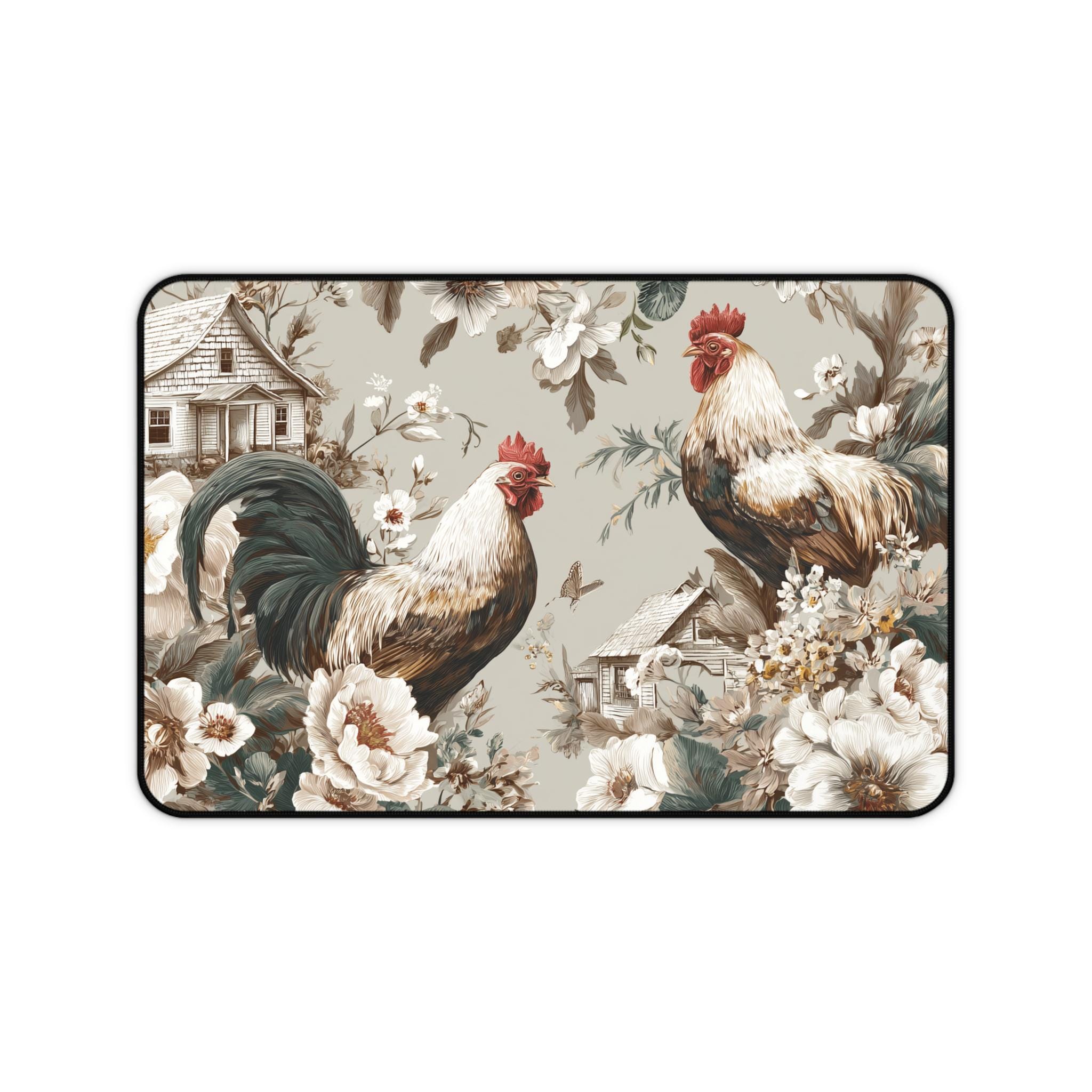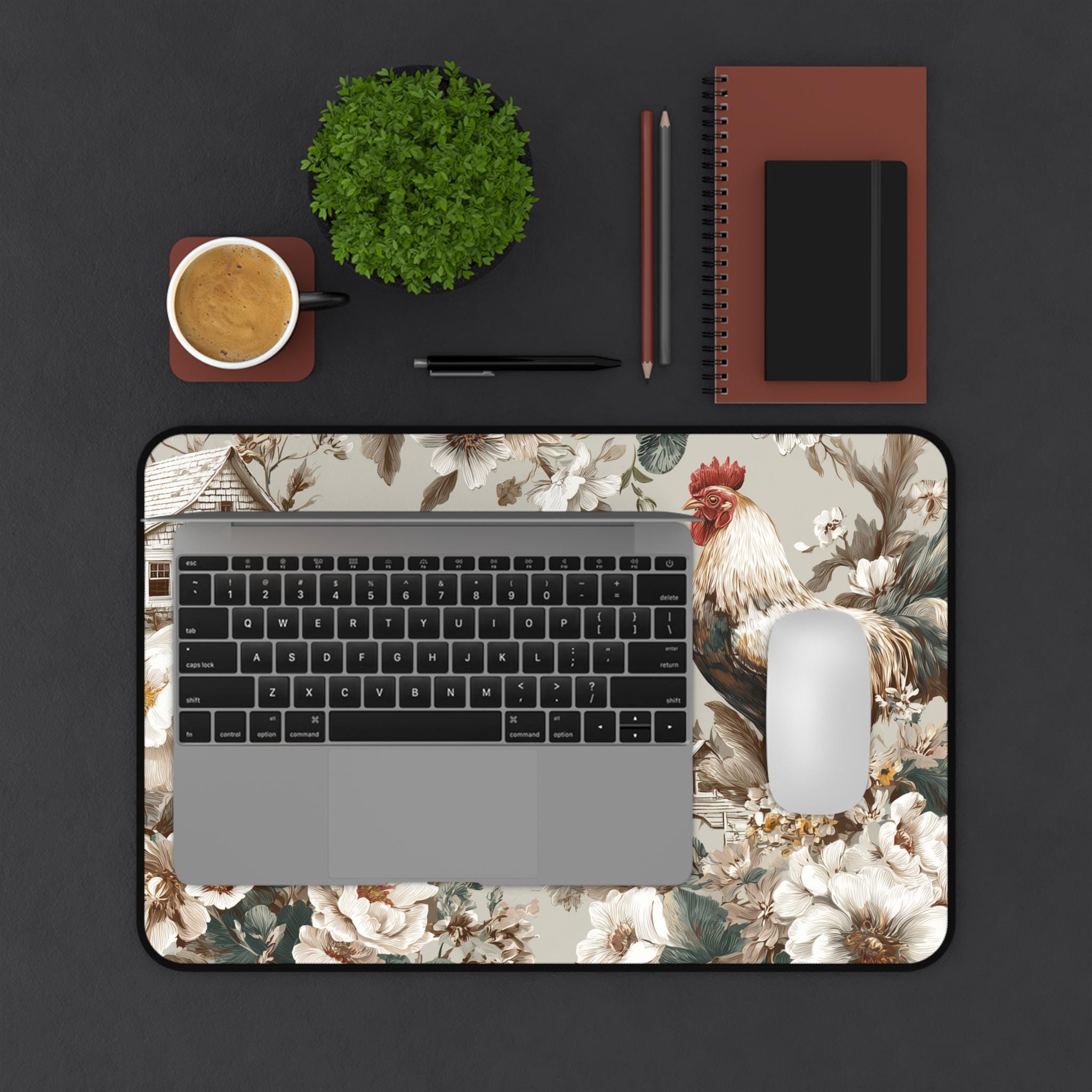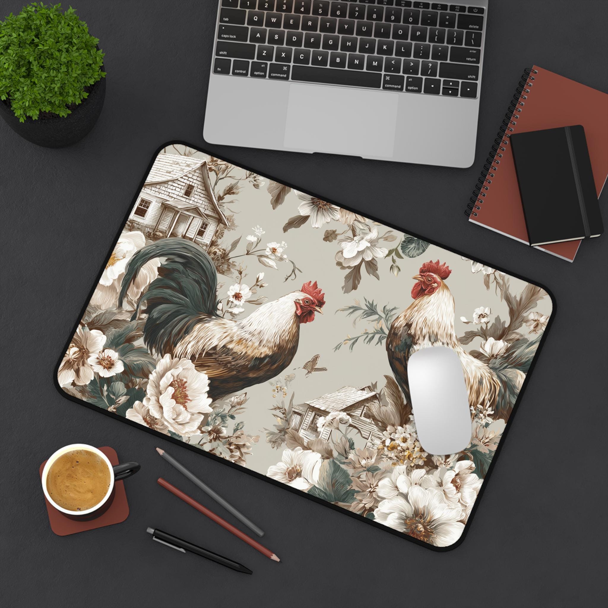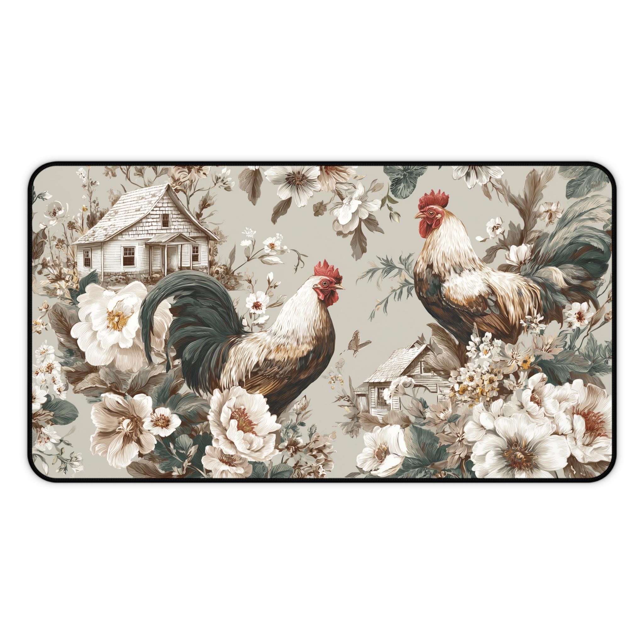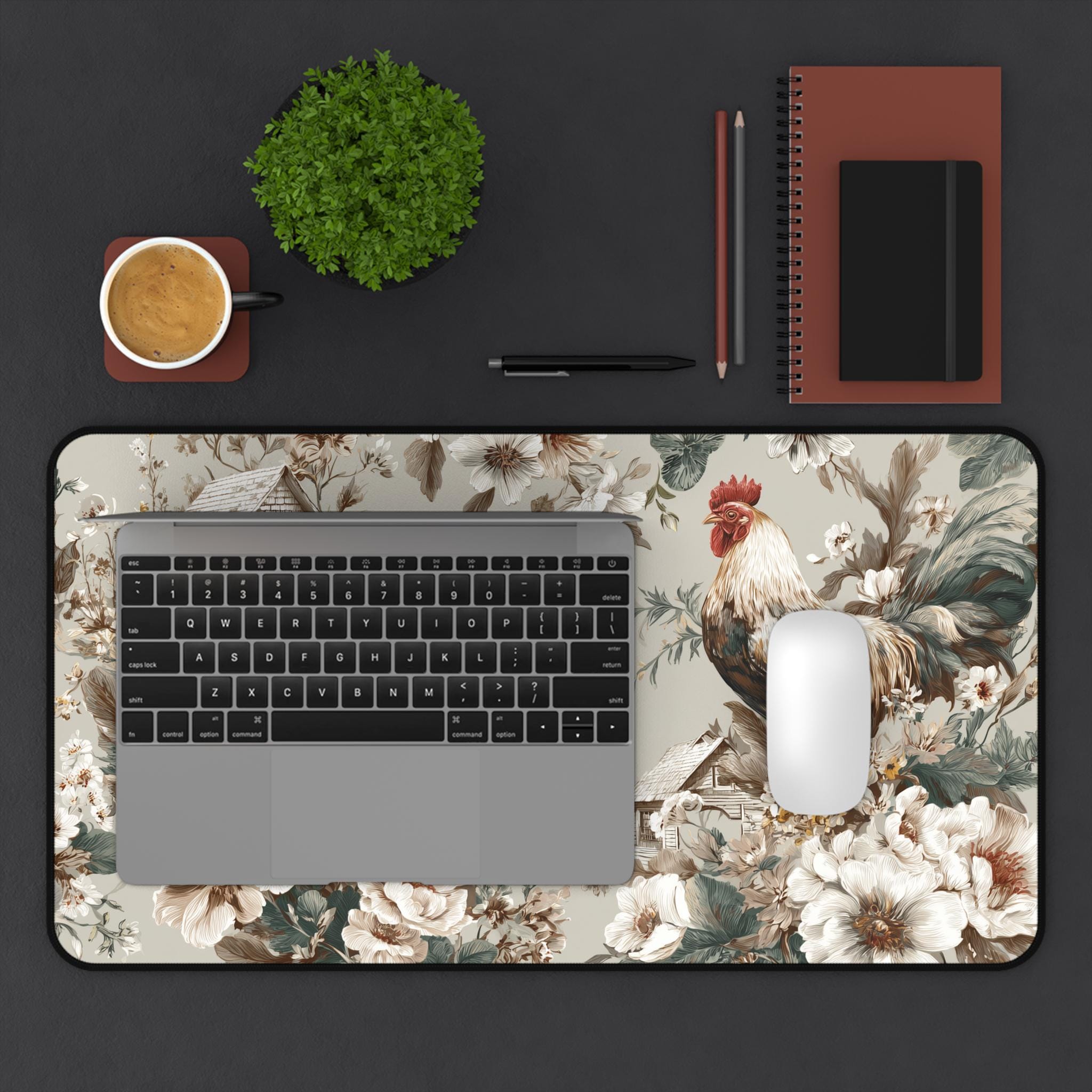 Add rustic farmhouse charm to your workspace with this beautifully illustrated rooster desk mat. Featuring detailed roosters, vintage barns, and soft floral artwork, this oversized mouse pad creates a warm and inviting cottagecore aesthetic. Smooth surface, non-slip rubber backing, and high-quality printing make it perfect for work, gaming, and everyday use.