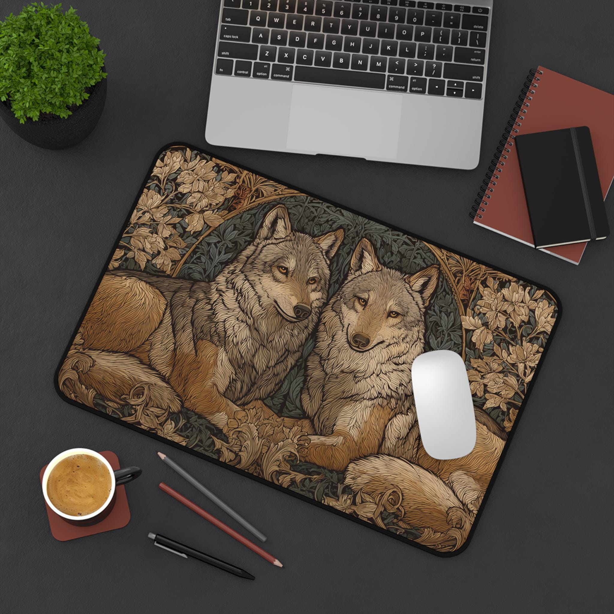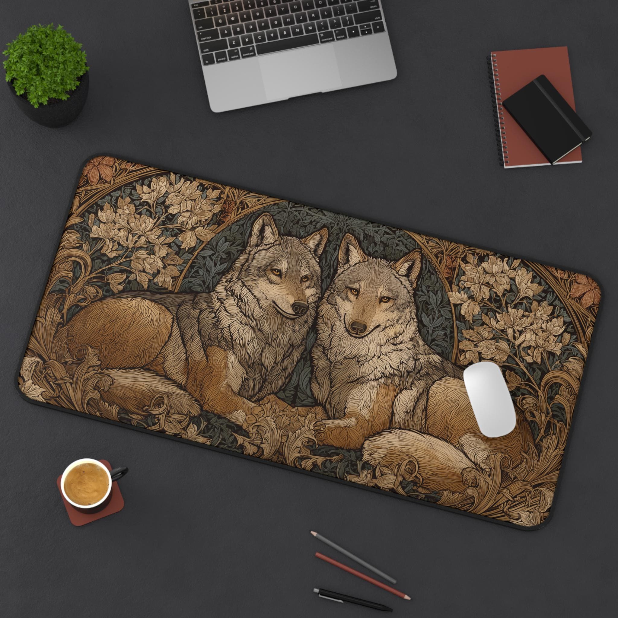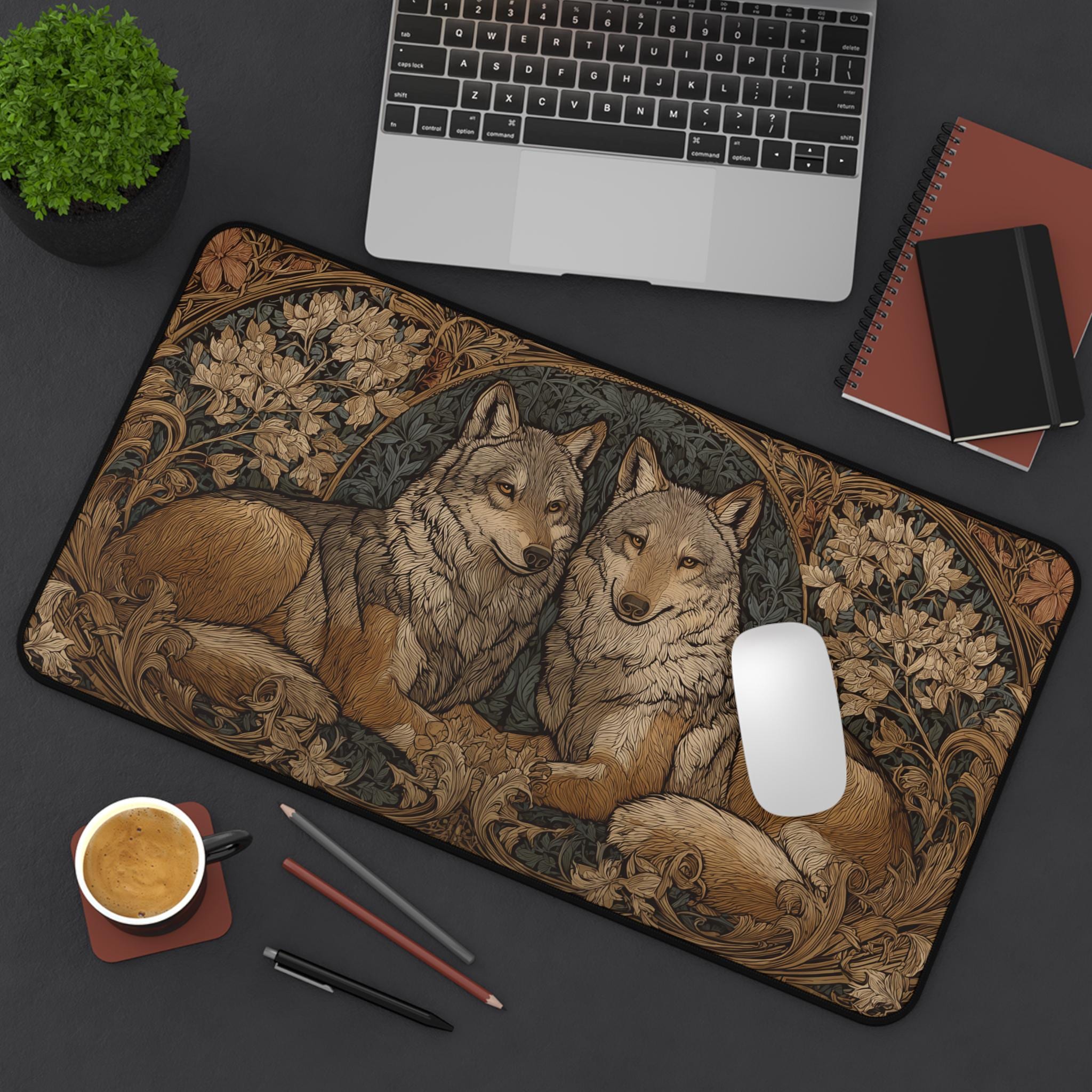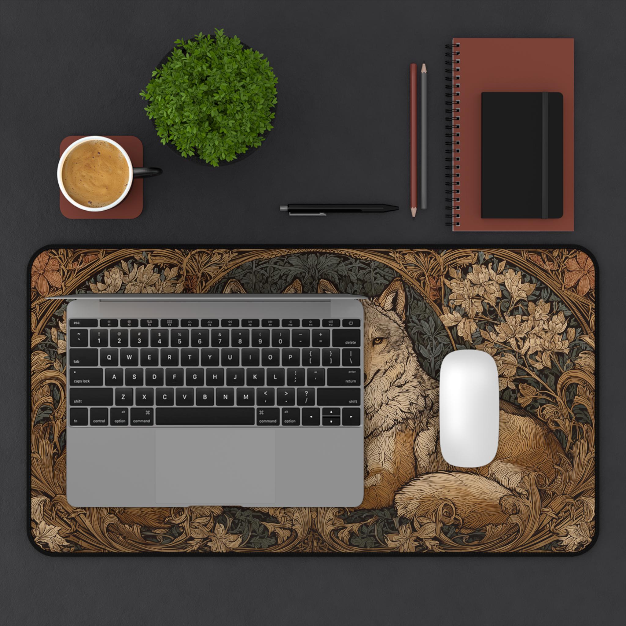 Wolf Desk Mat – Mystic Woodland Mouse Pad, Boho Wolf Art Desk Pad, Oversized Gaming Mat, Nature Lover Office Decor Gift