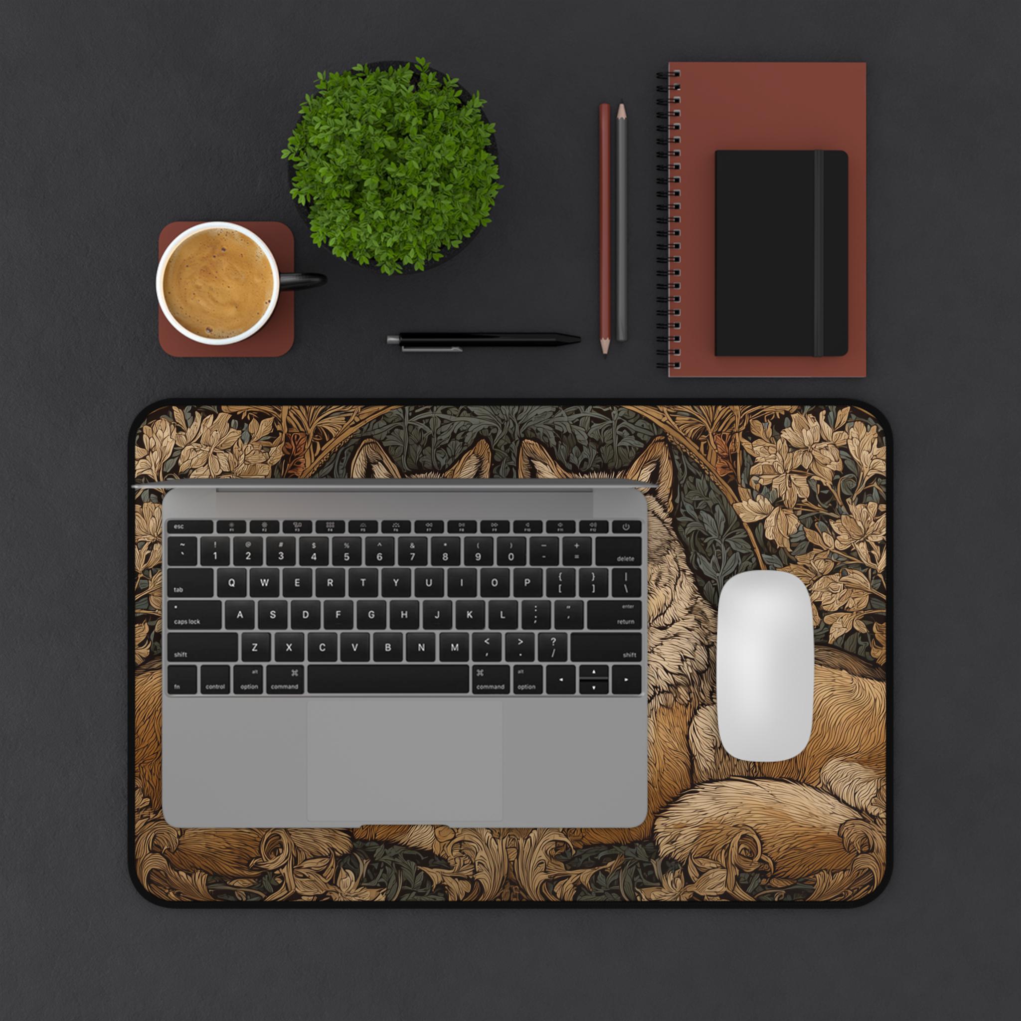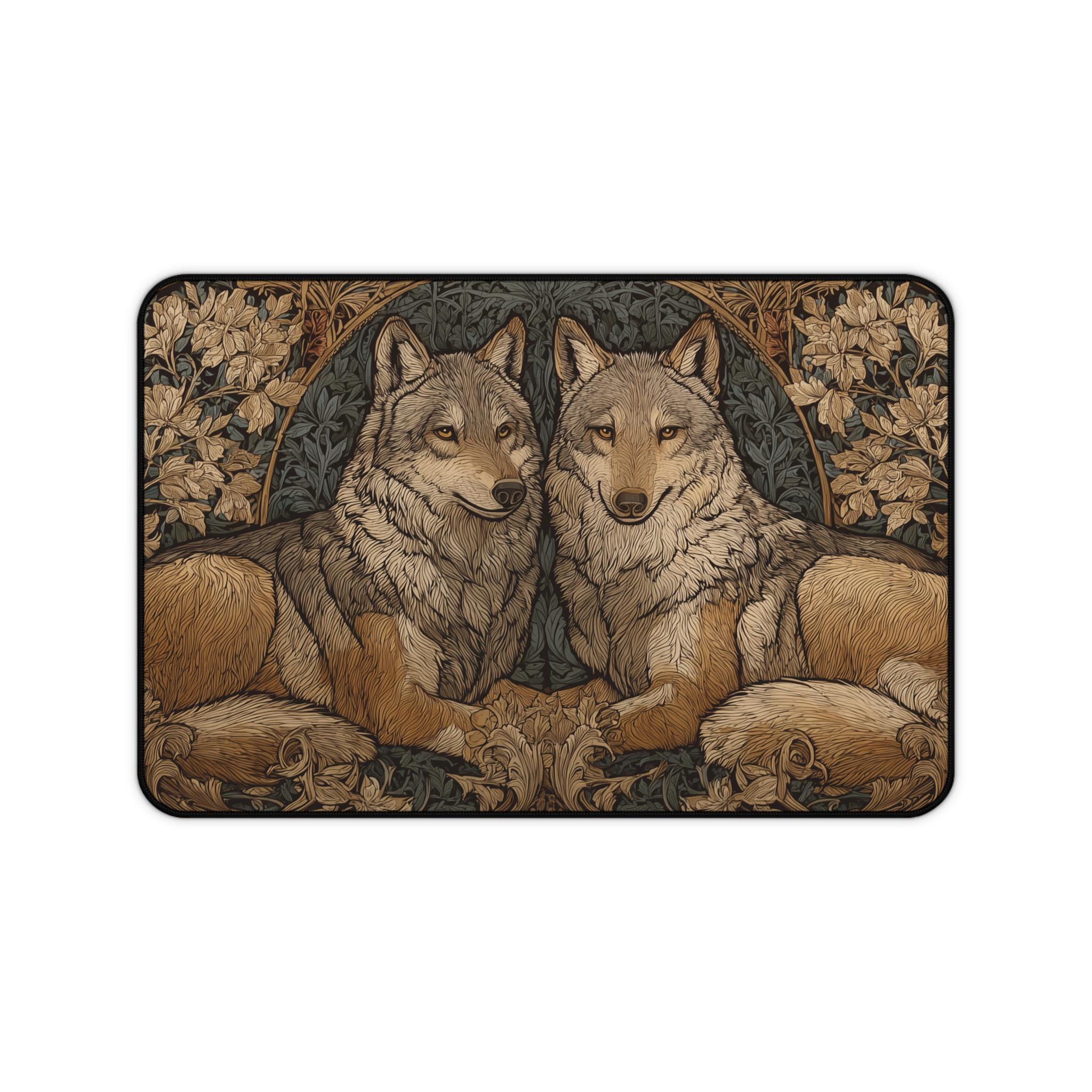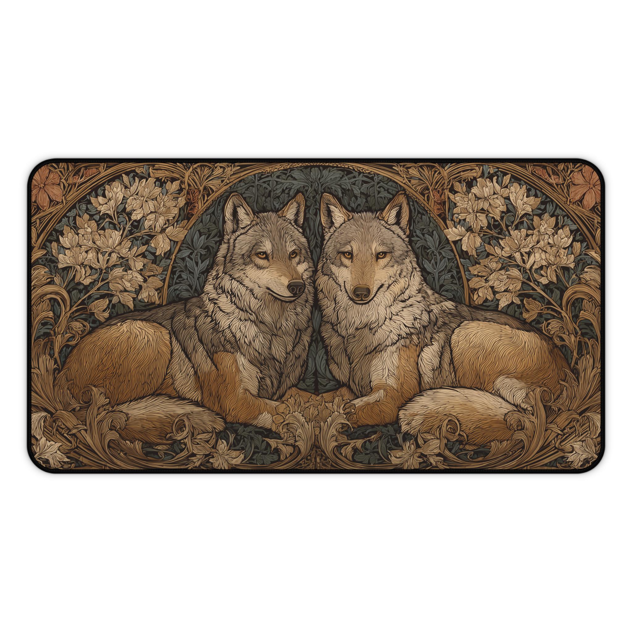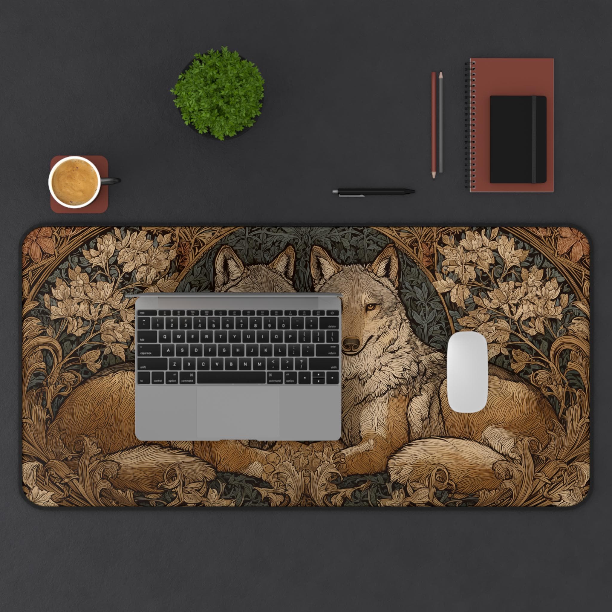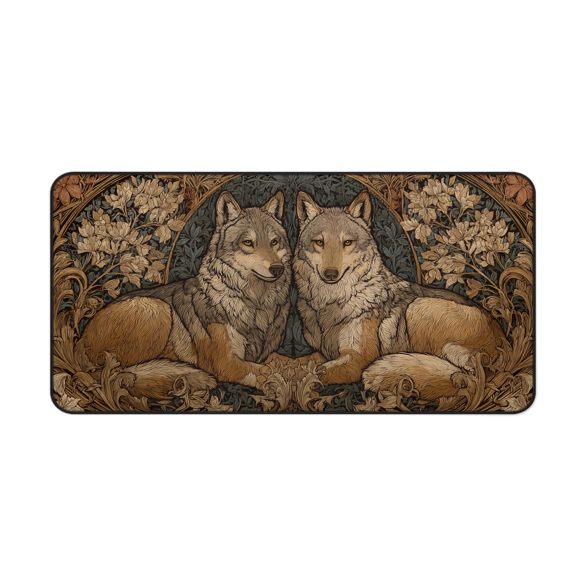 Wolf Desk Mat – Mystic Woodland Mouse Pad, Boho Wolf Art Desk Pad, Oversized Gaming Mat, Nature Lover Office Decor Gift