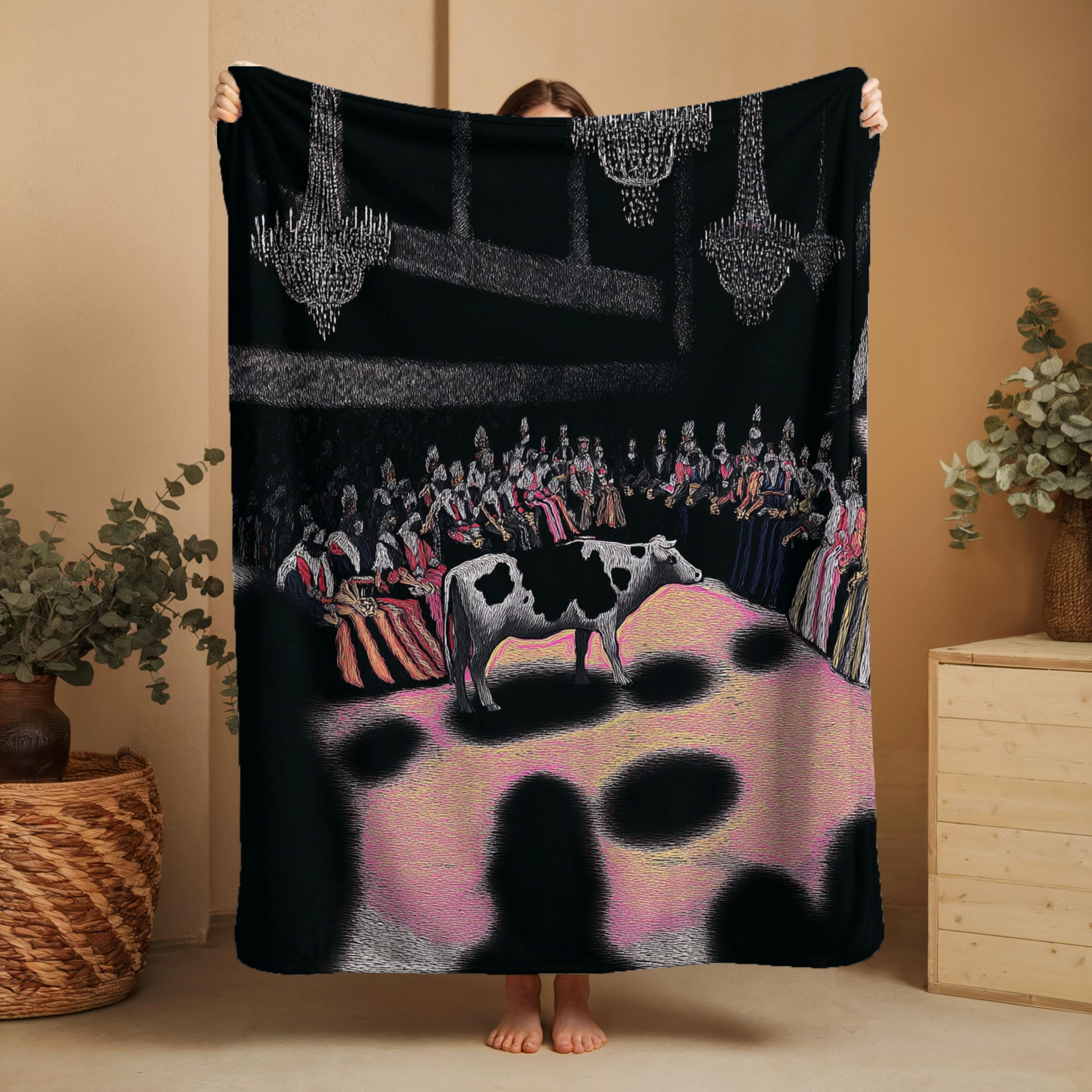 A Renaissance Ballroom: Cow Edition, Farmhouse Decor, Farm Animal Woven Blanket, Folk Art Cow Print, Trippy Tapestry, Cow Throw