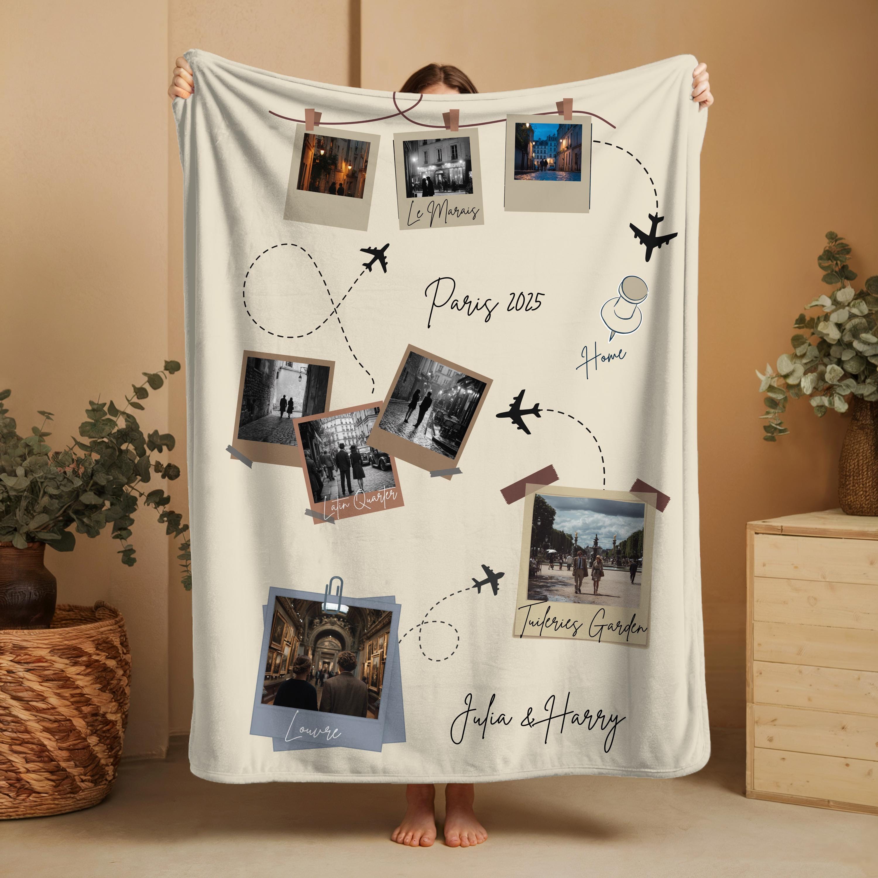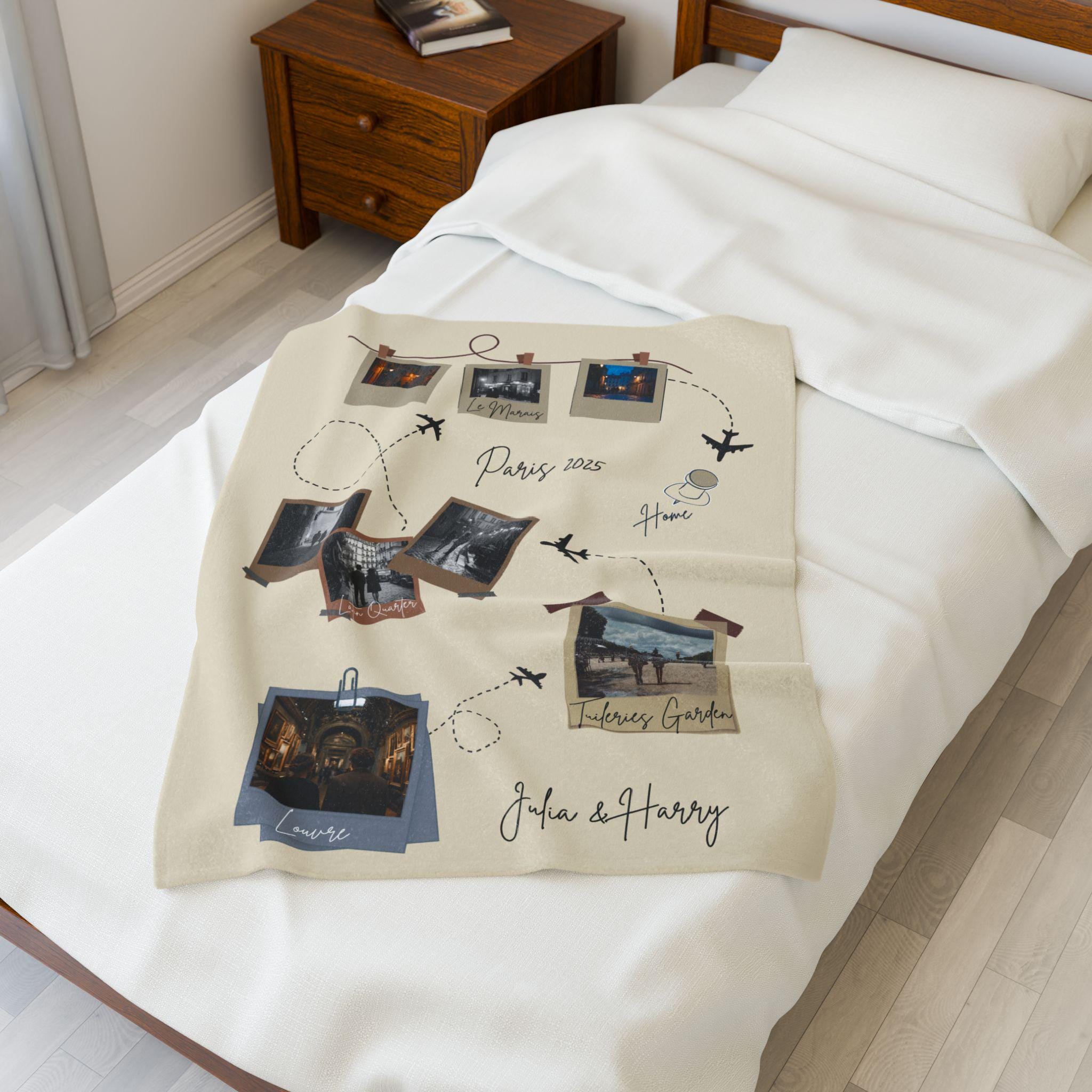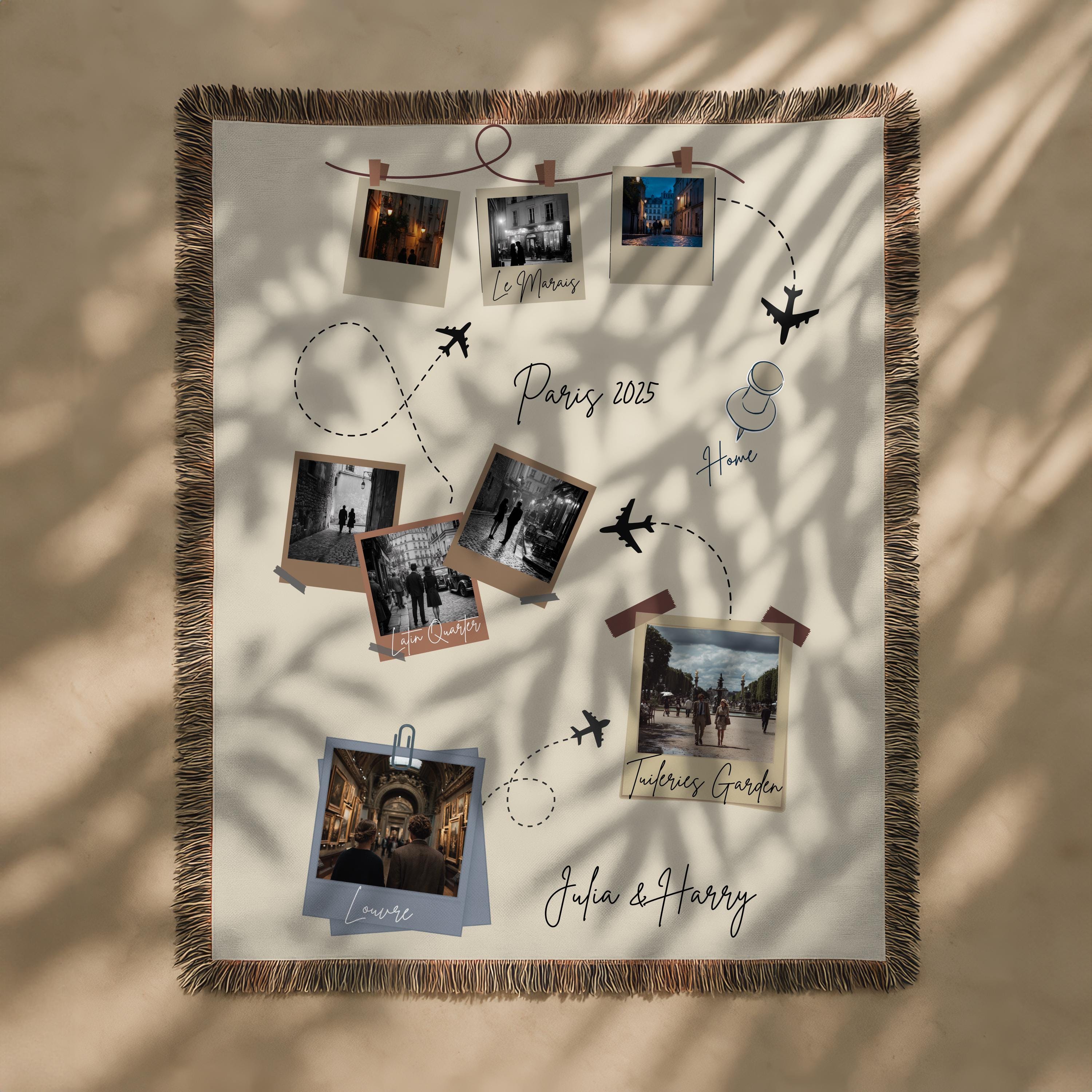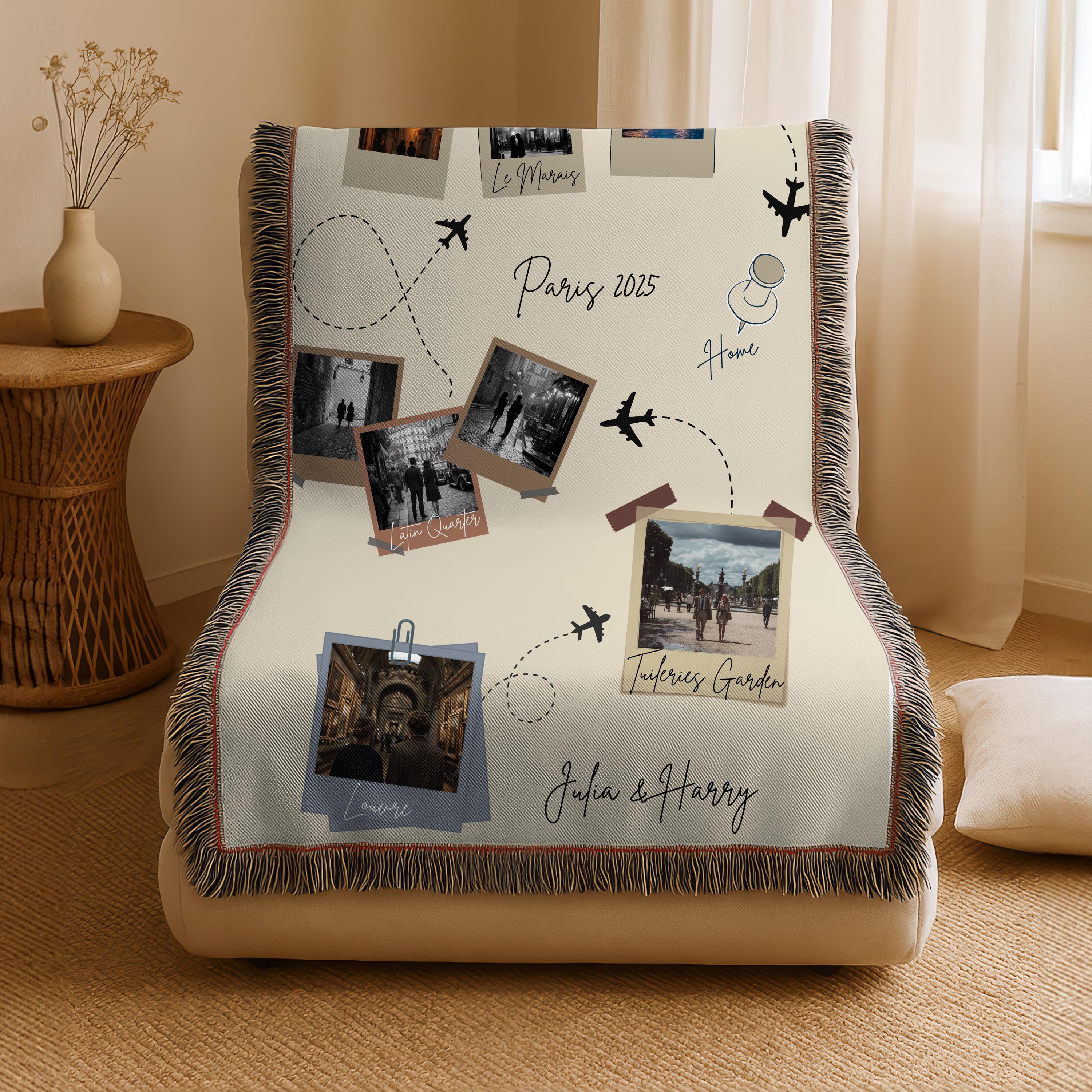 Whether it's a Paris honeymoon, your first international adventure together, an anniversary trip, or a dream vacation—your blanket becomes a soft, warm map of your memories.