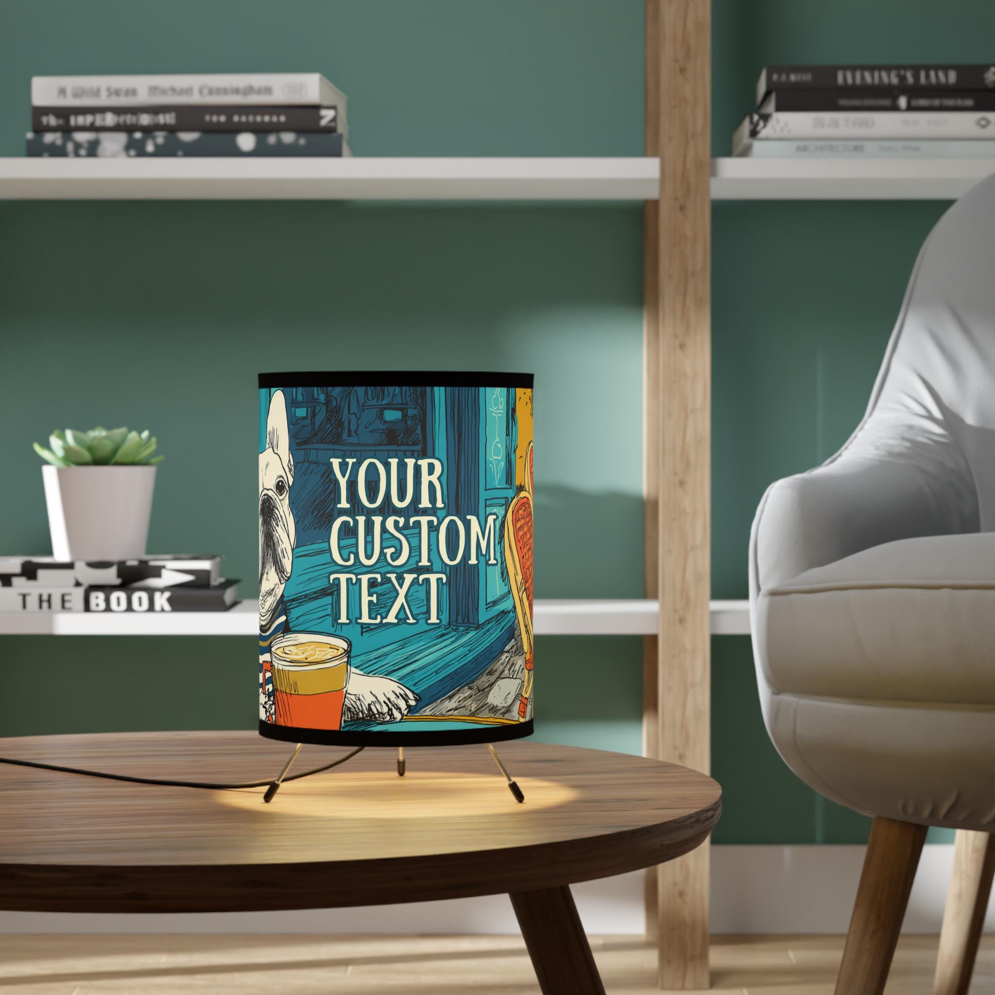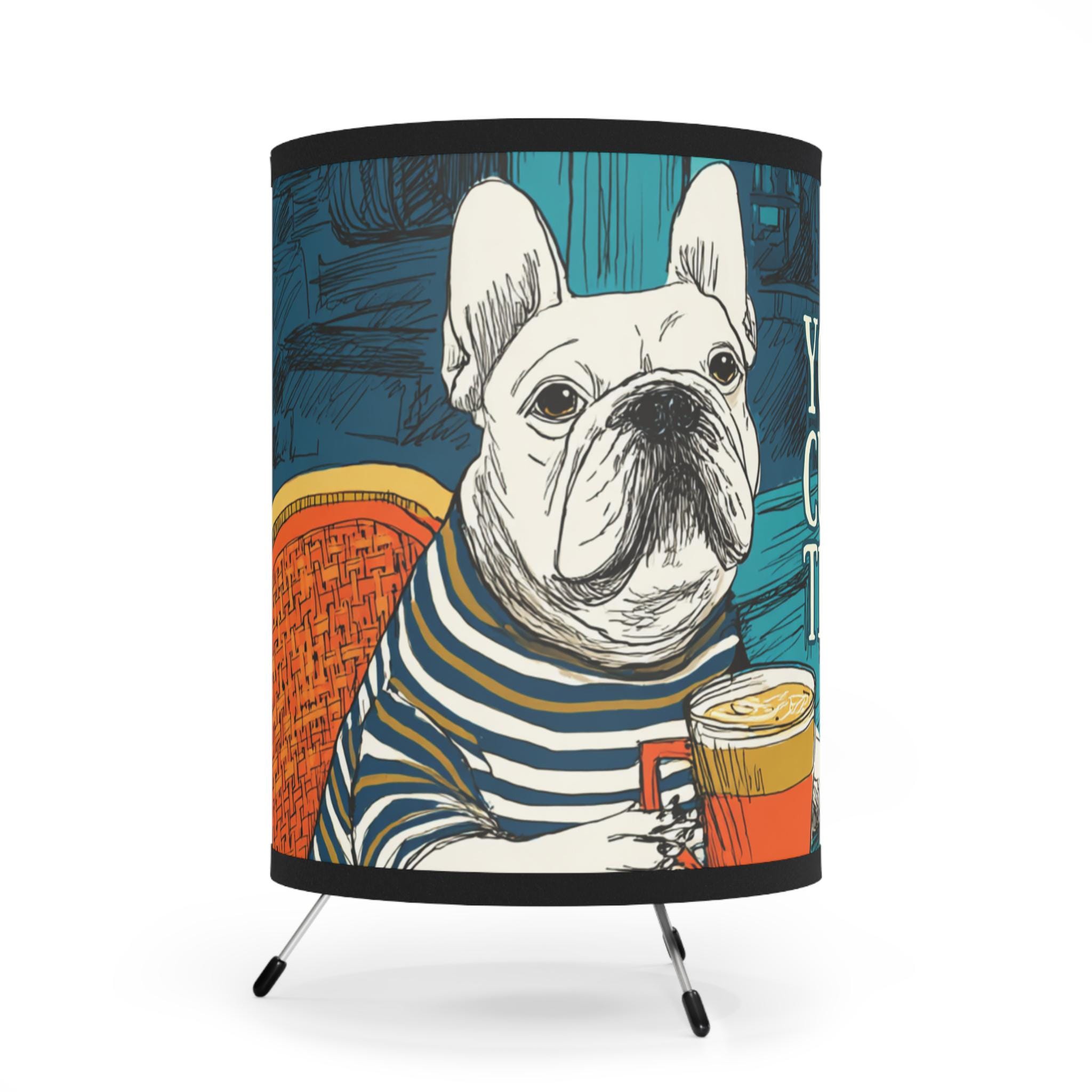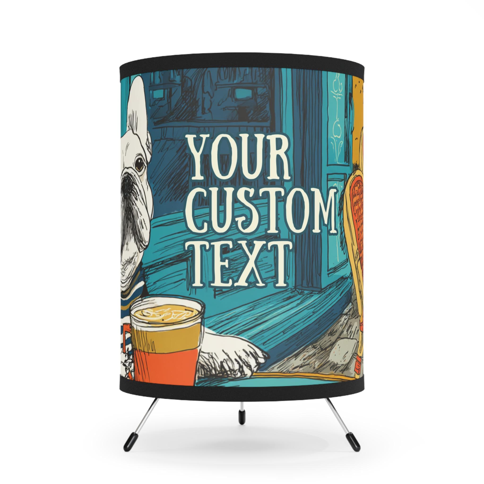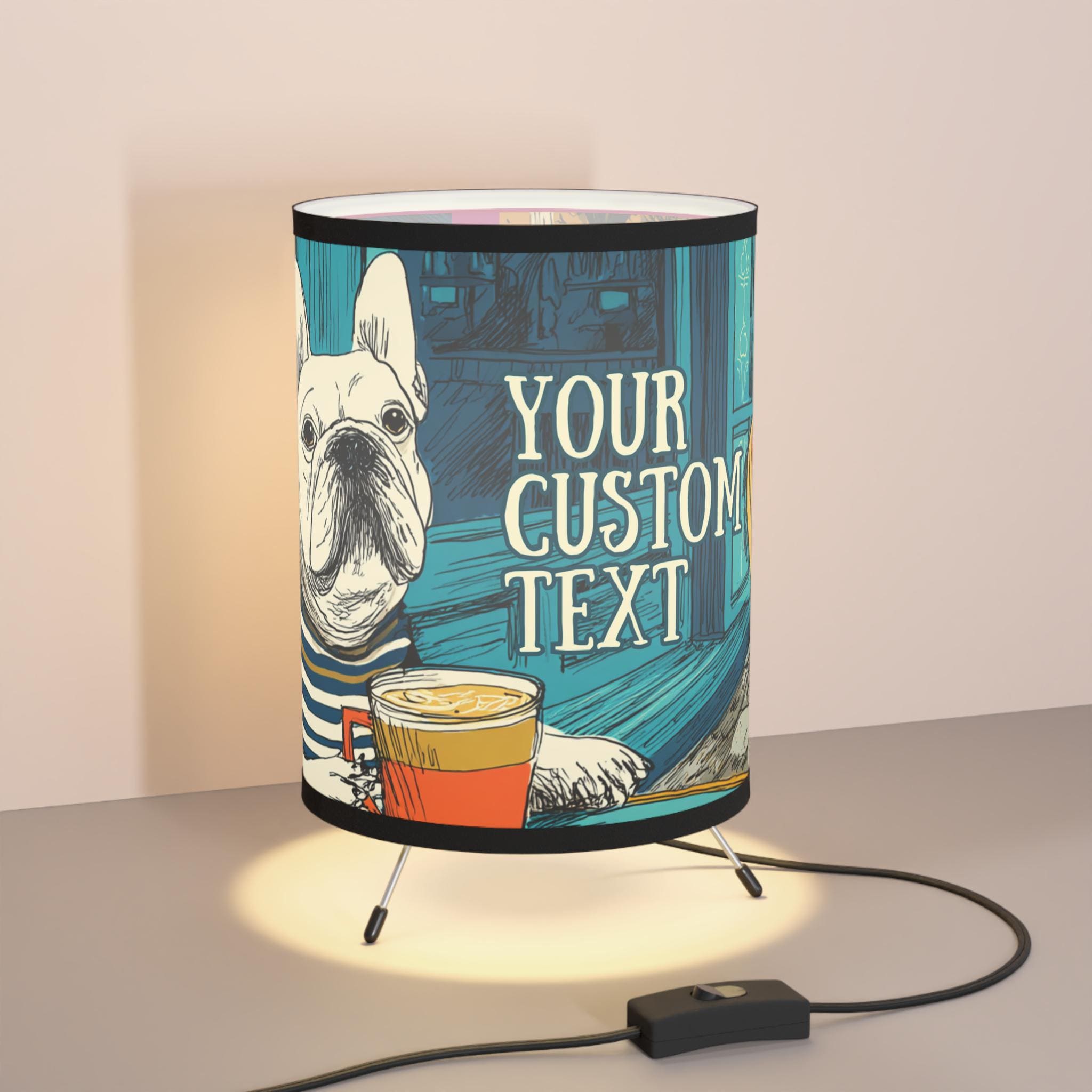 Custom Text French Bulldog Café Tripod Lamp – Paris Dog Art Lamp, Personalized Pet Lover Gift, Quirky Frenchie Home Decor