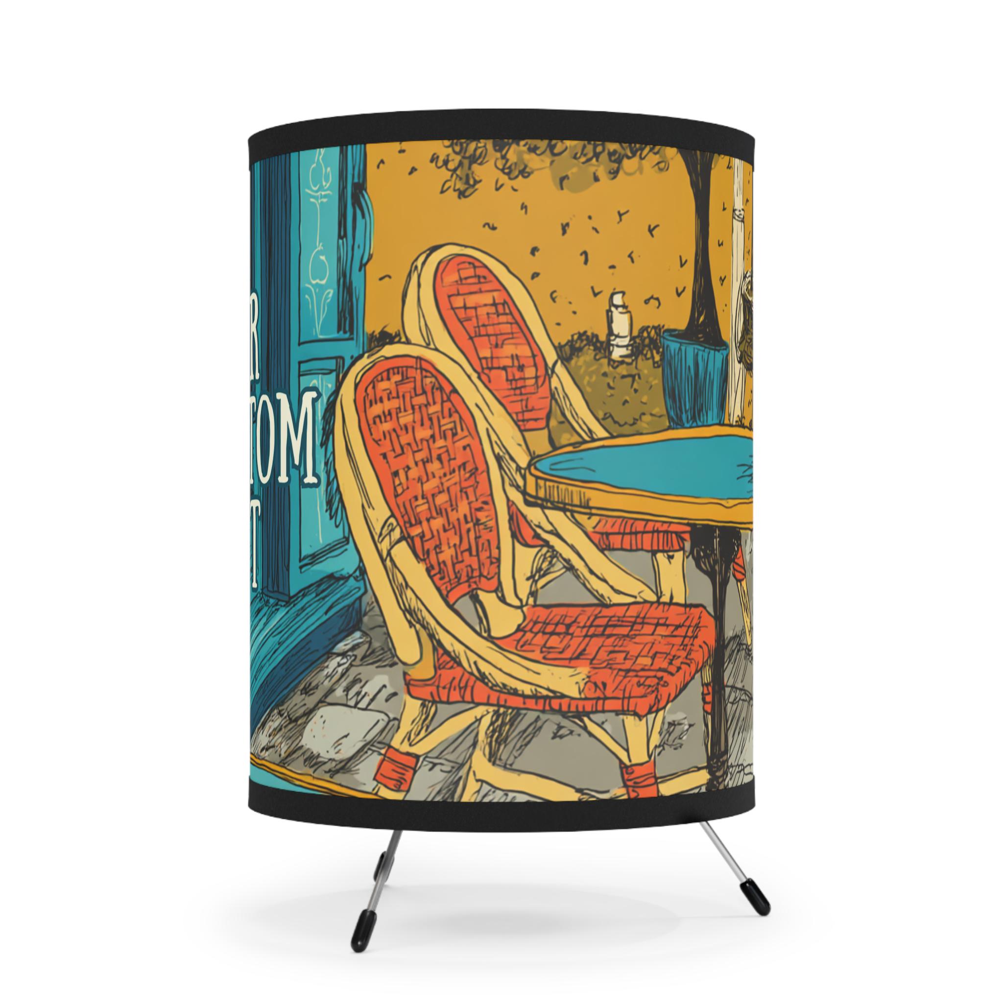 Bring Parisian charm to your home with this customizable French Bulldog café-themed tripod lamp. Featuring hand-drawn bistro details, warm colors, and a stylish Frenchie enjoying a drink, this lamp adds personality to any room. Add your own text to create a unique, funny, and heartfelt gift for dog lovers, pet parents, or anyone who loves whimsical Paris artwork.