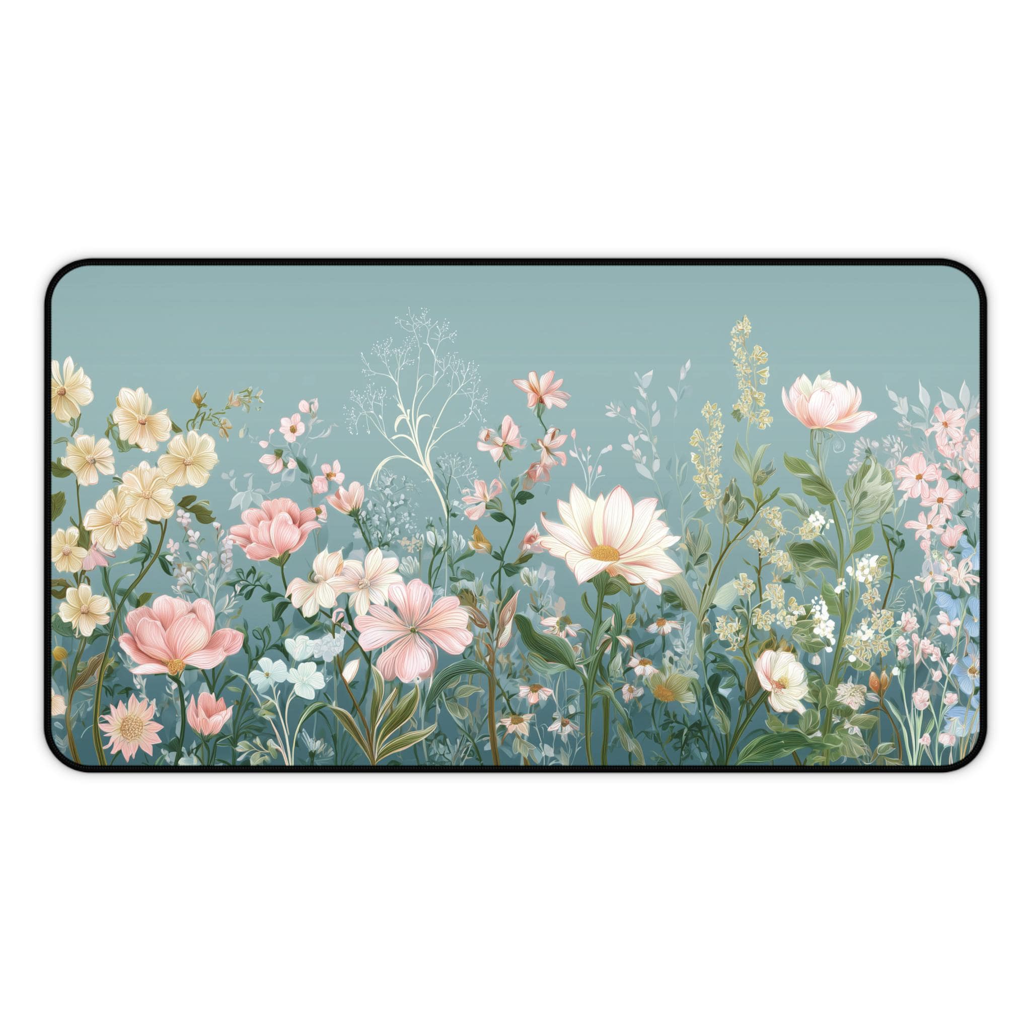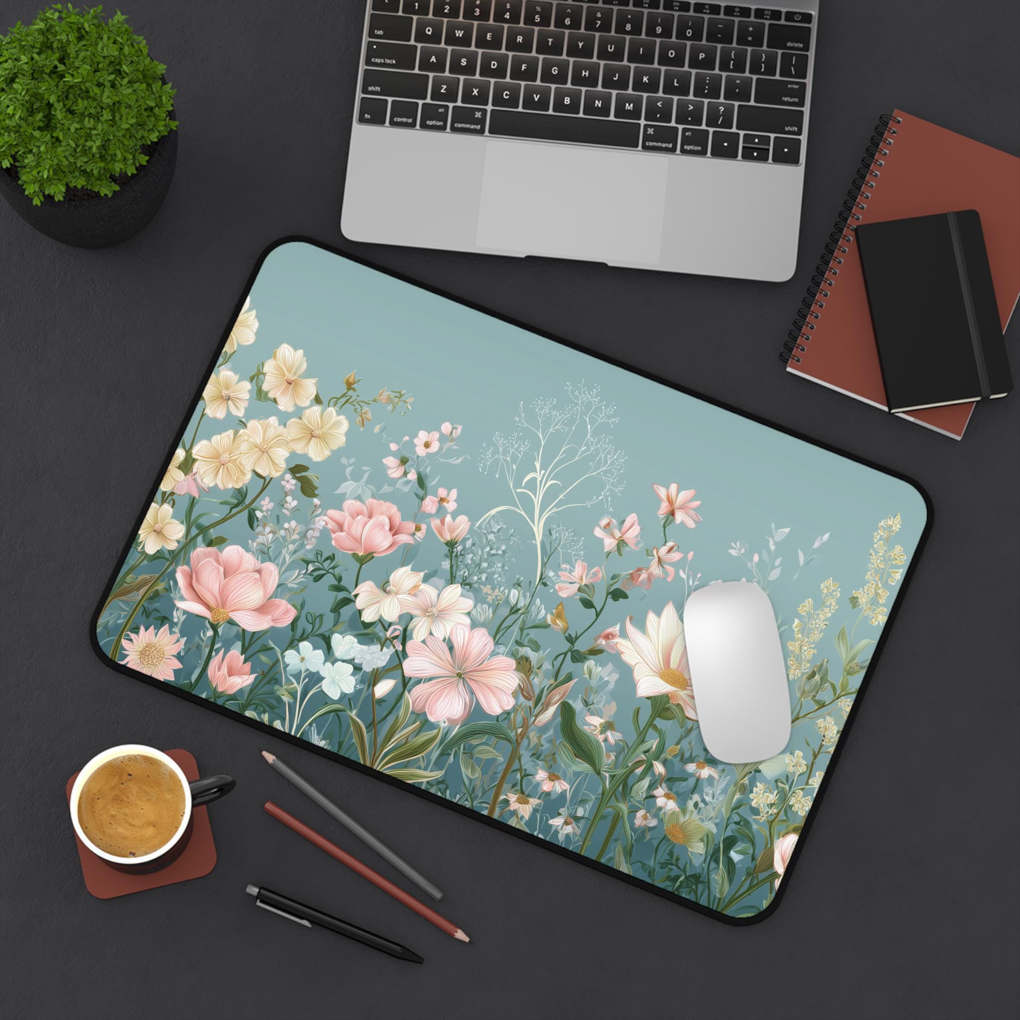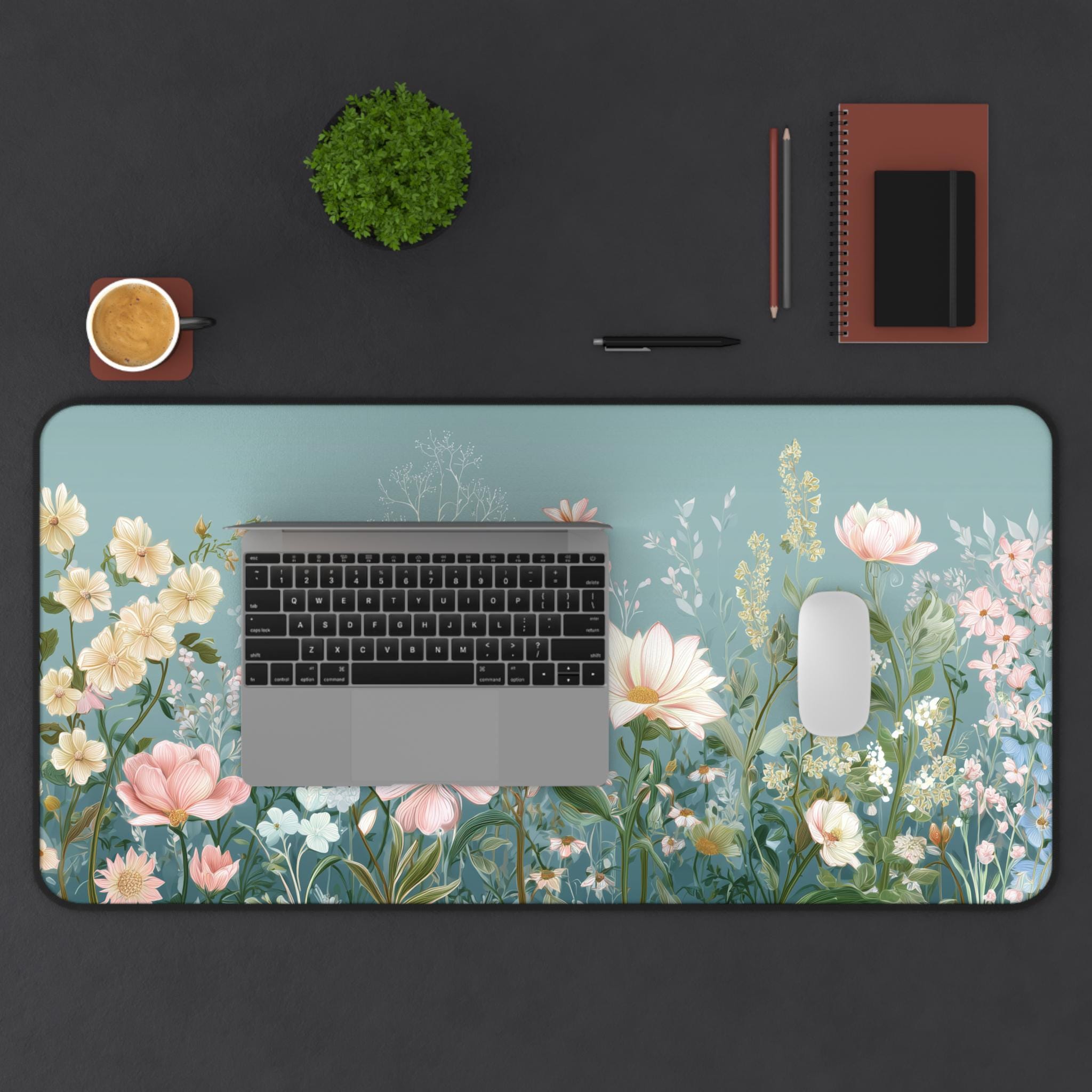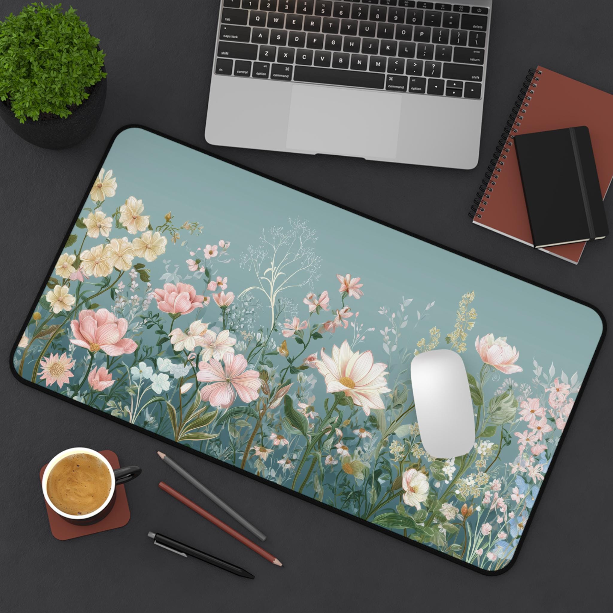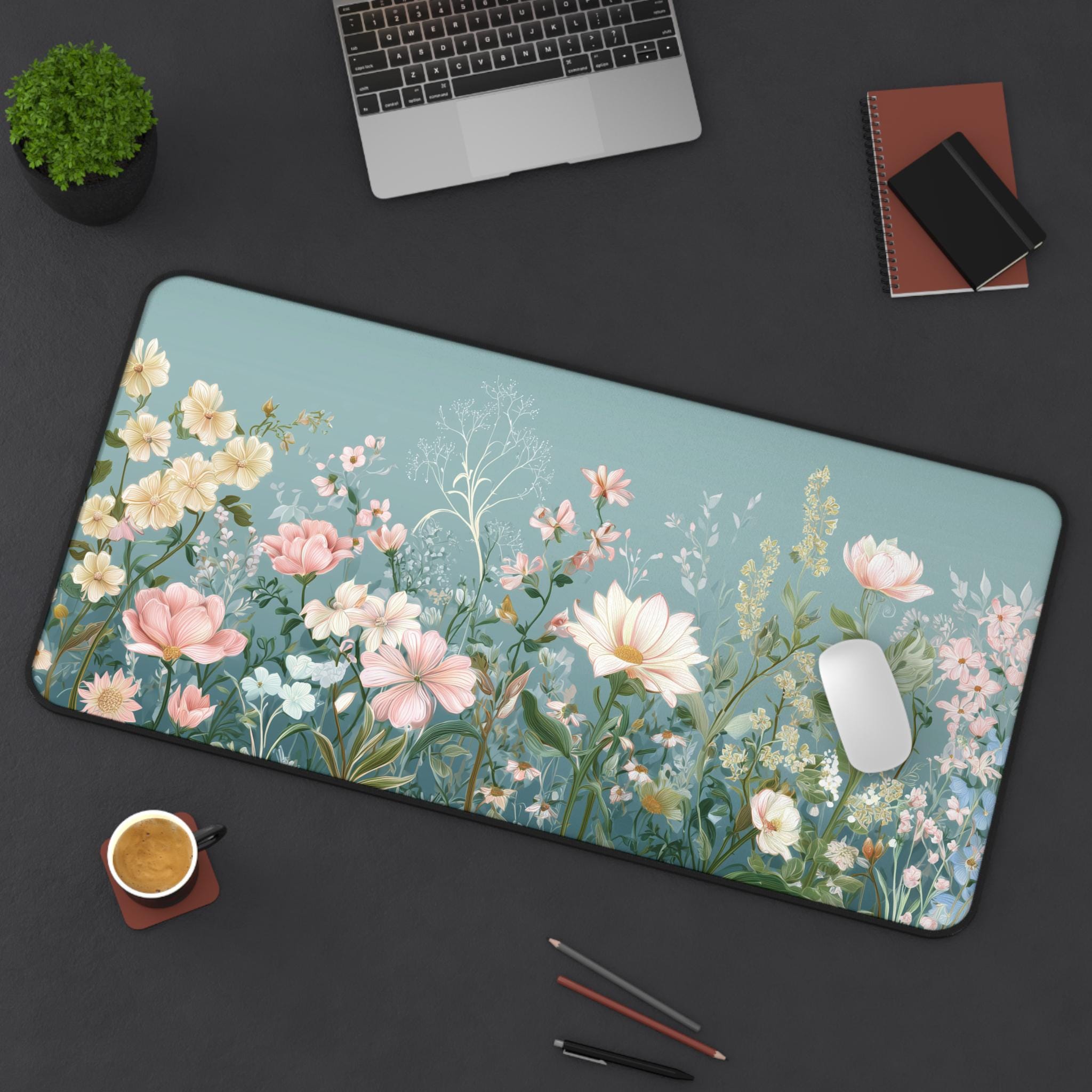 Pastel Floral Desk Mat, Botanical Extended Mouse Pad, Aesthetic Flower Desk Pad for Office, Cute Workspace Decor Gift
