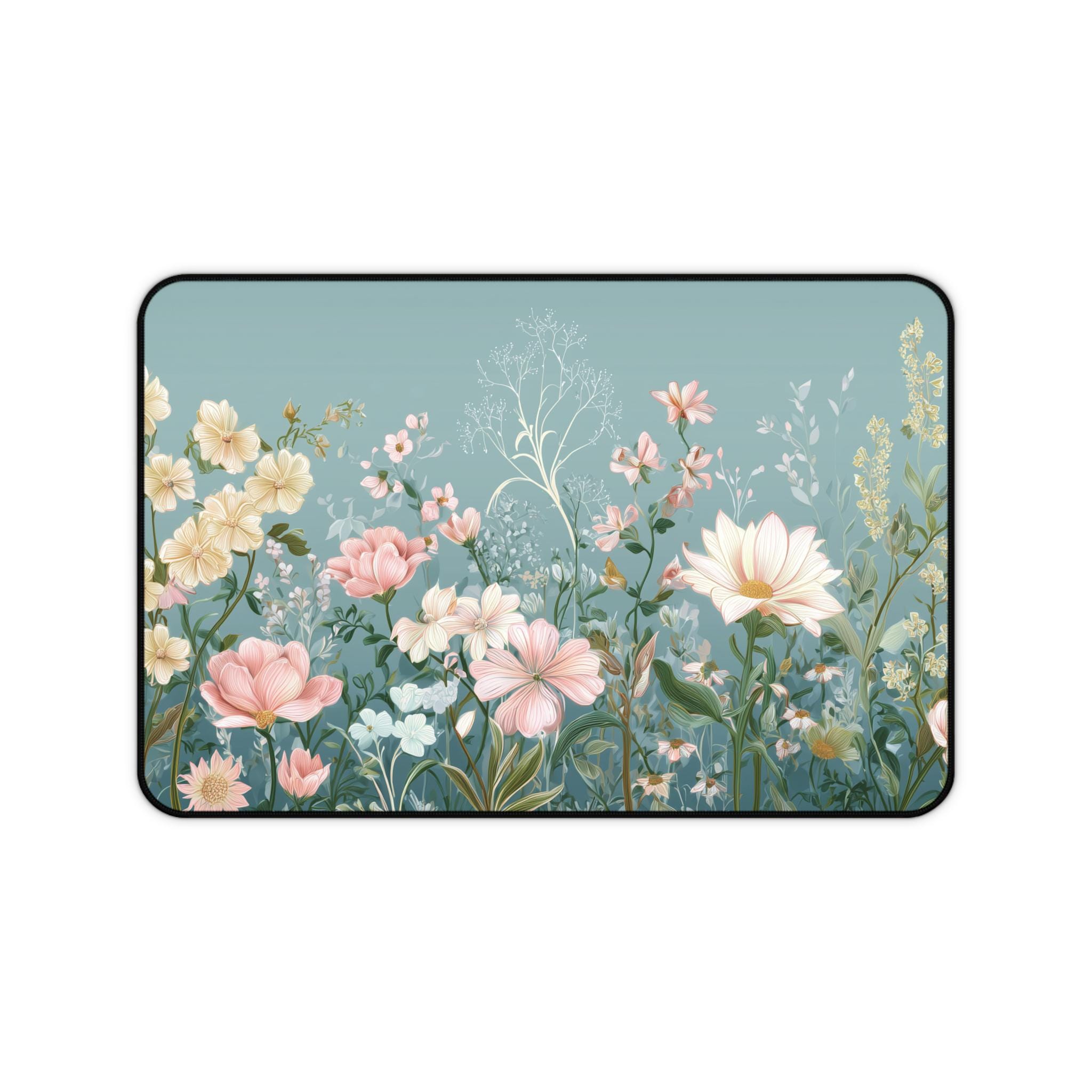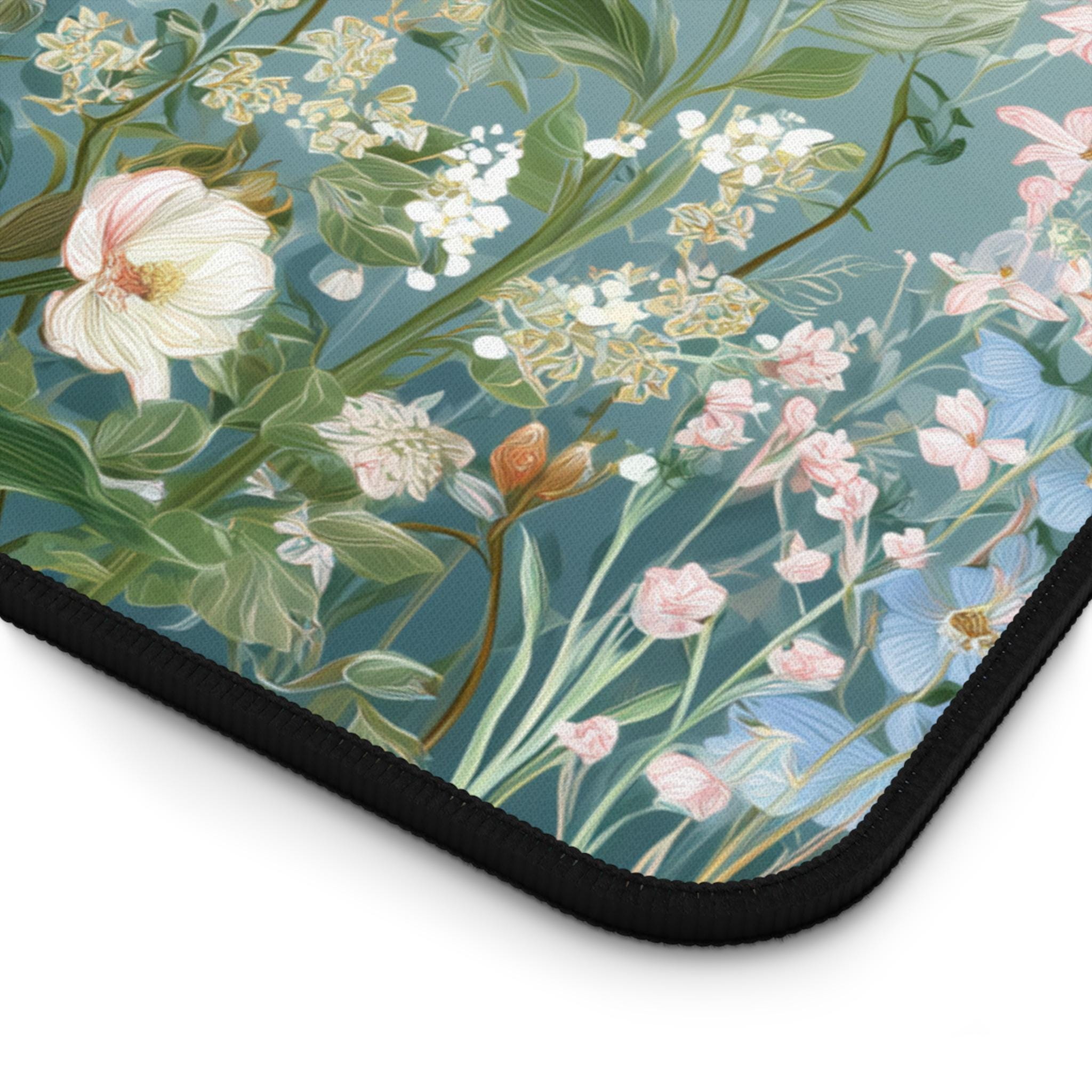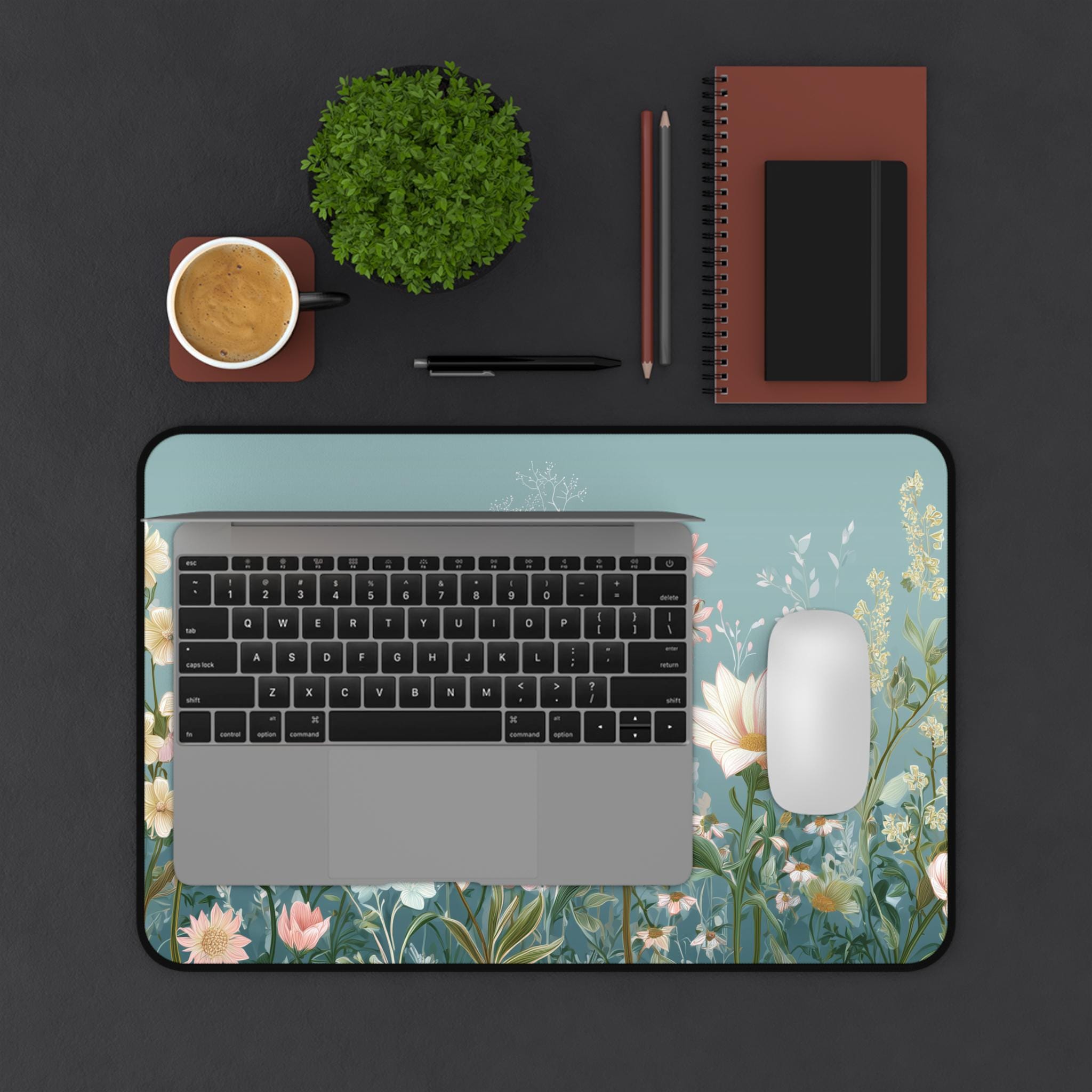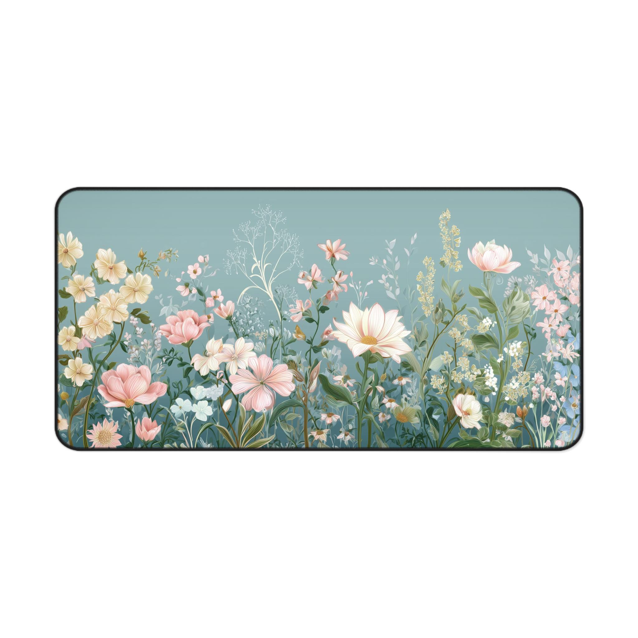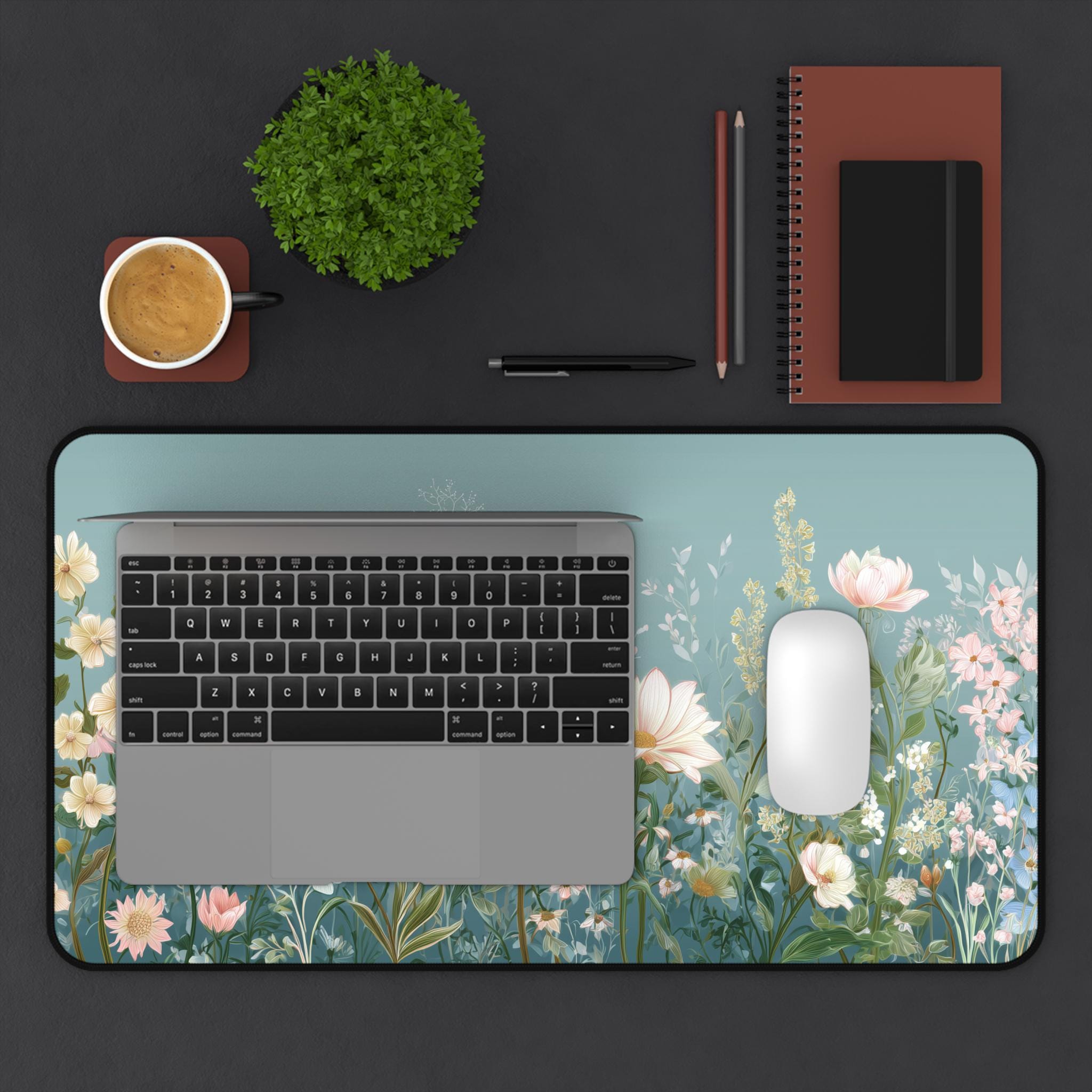 Pastel Floral Desk Mat, Botanical Extended Mouse Pad, Aesthetic Flower Desk Pad for Office, Cute Workspace Decor Gift