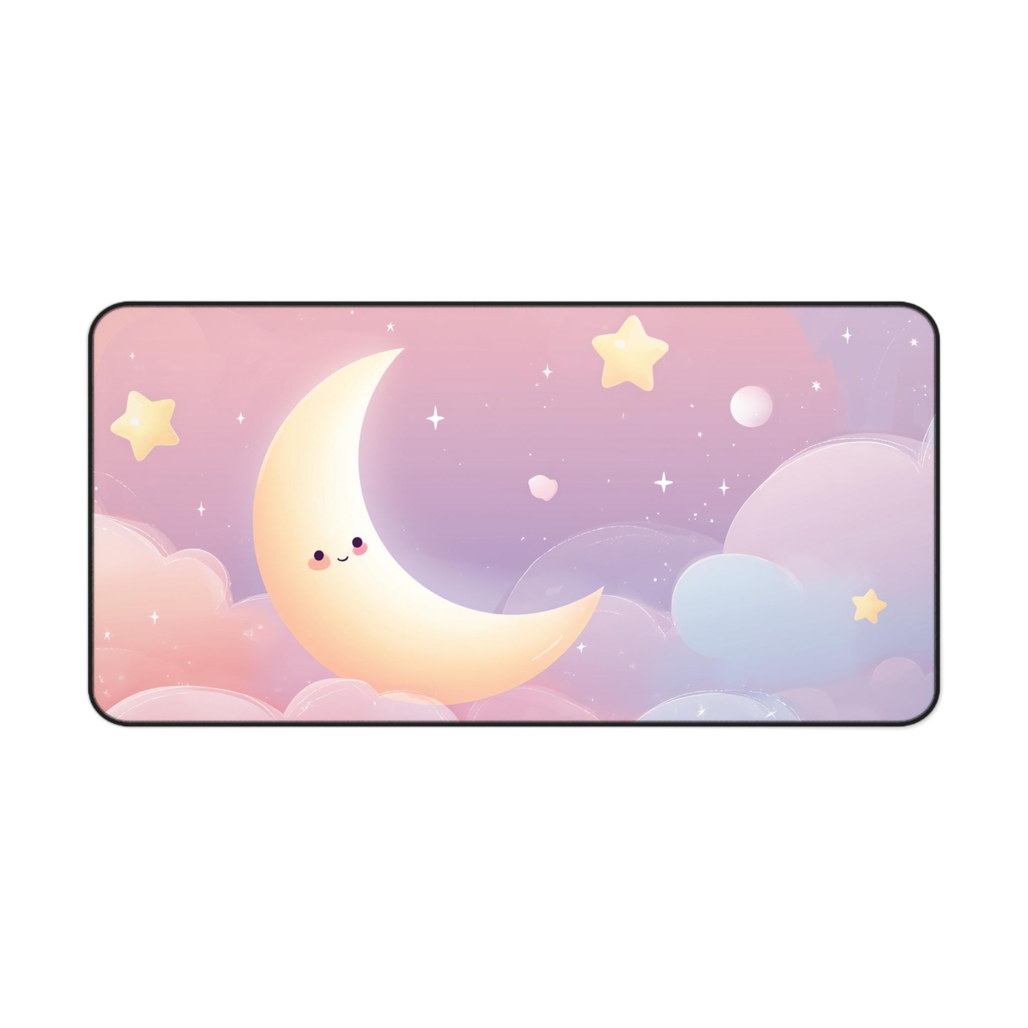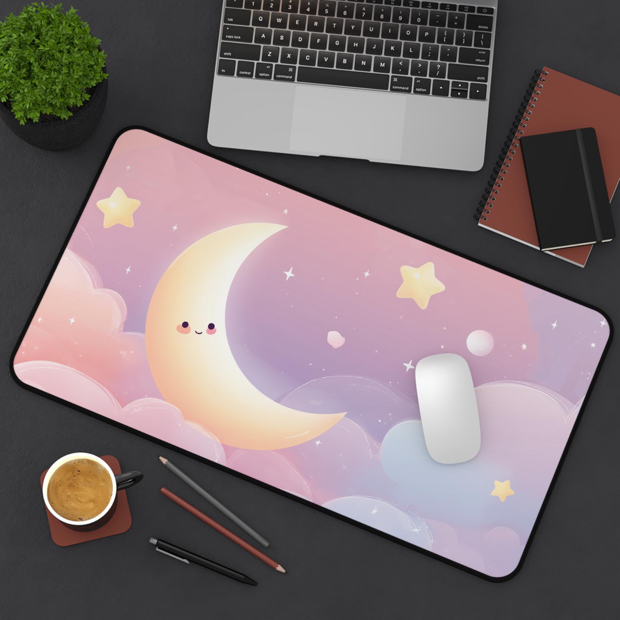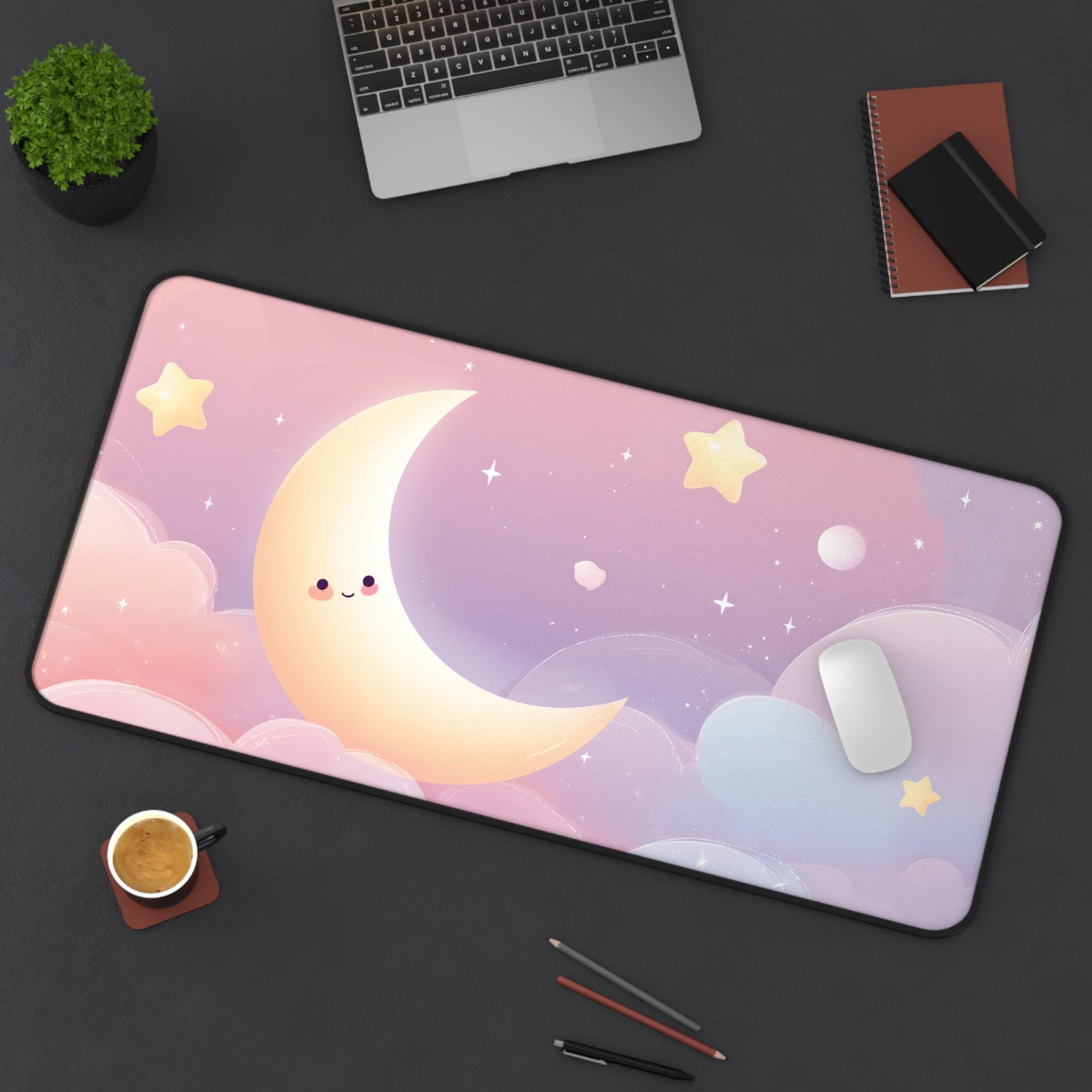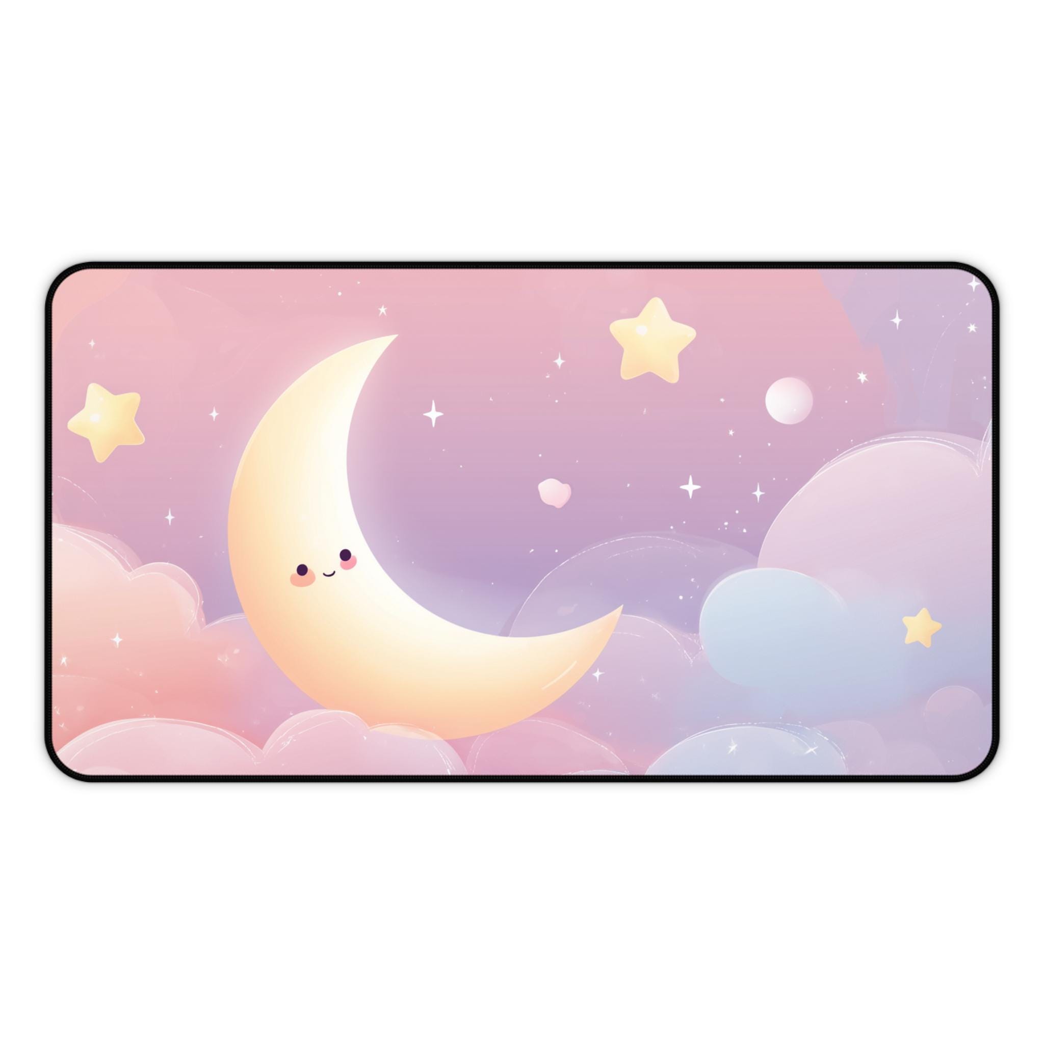 Cute Kawaii Moon Desk Mat – Pastel Galaxy Mousepad | Large Desk Pad for Gaming, Office & Study | Aesthetic Desk Decor