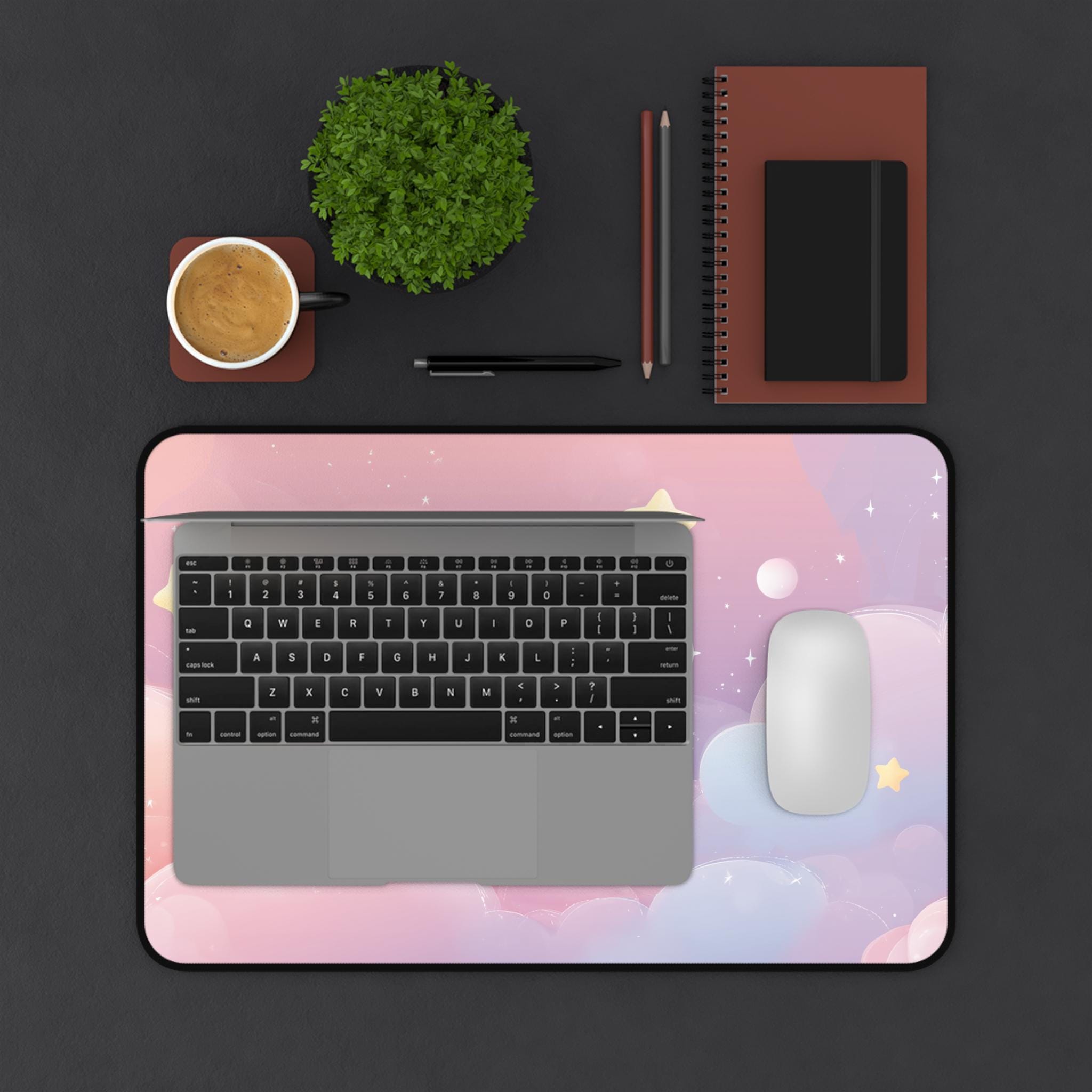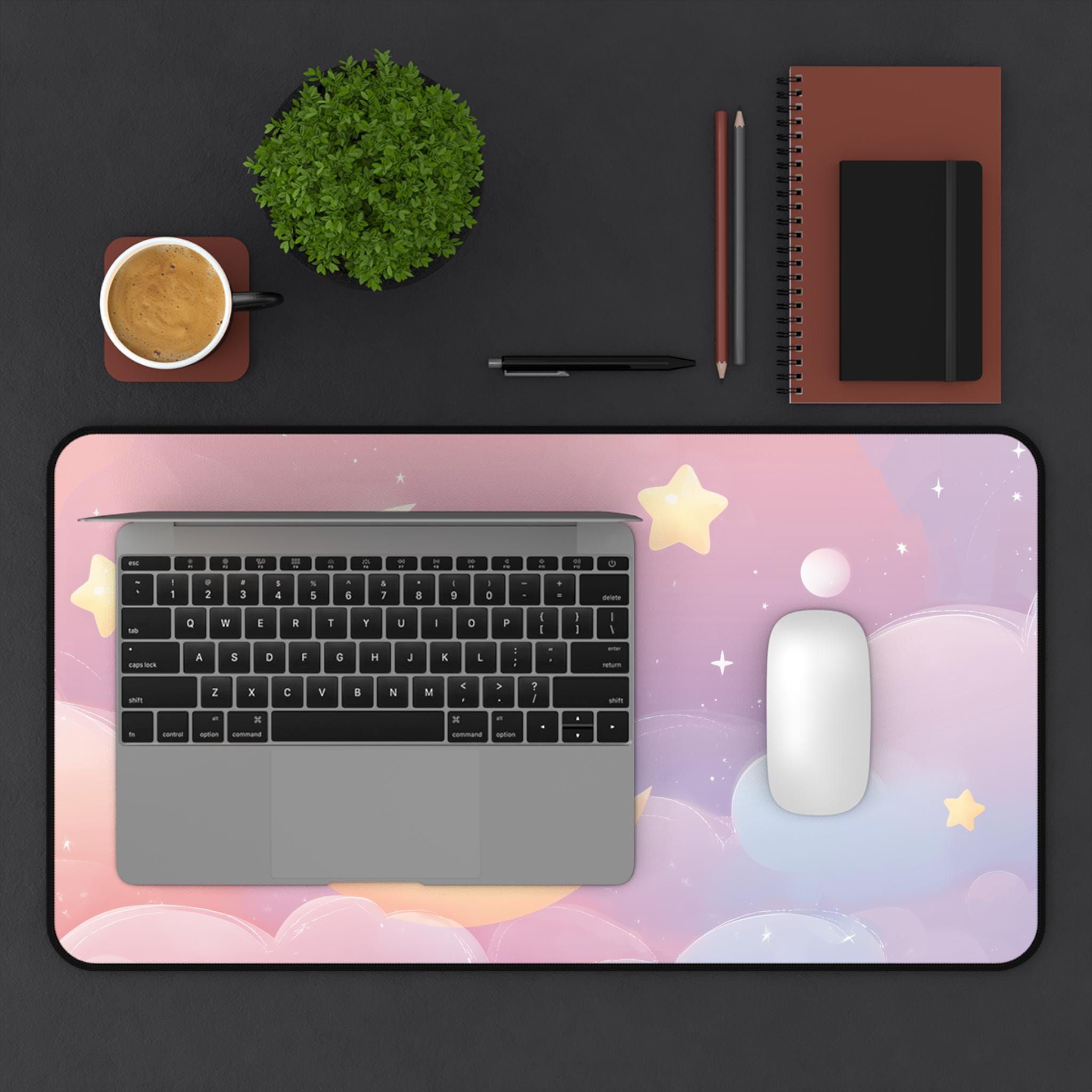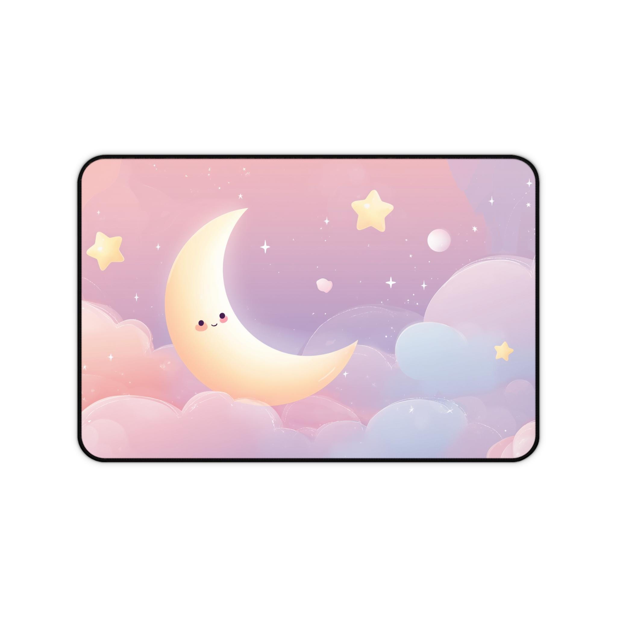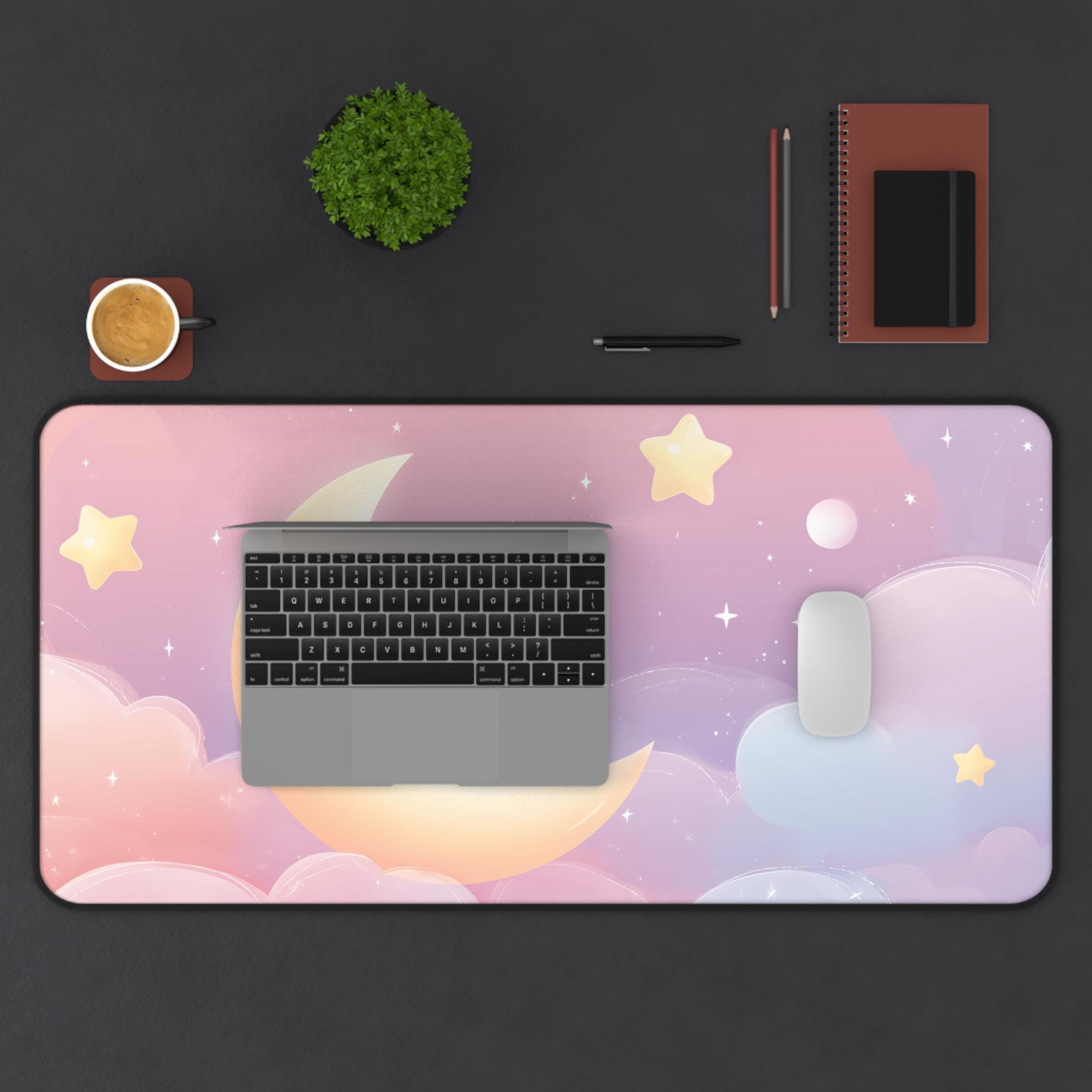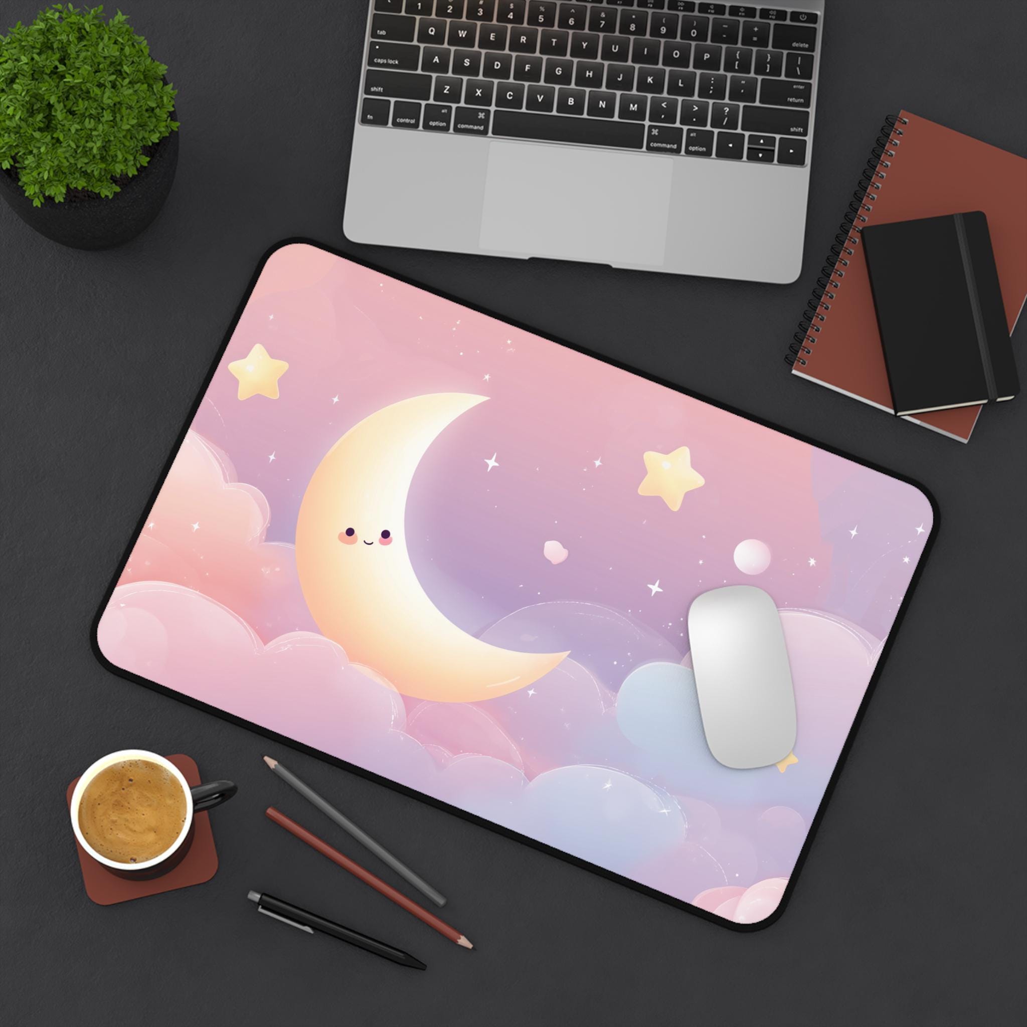 Cute Kawaii Moon Desk Mat – Pastel Galaxy Mousepad | Large Desk Pad for Gaming, Office & Study | Aesthetic Desk Decor