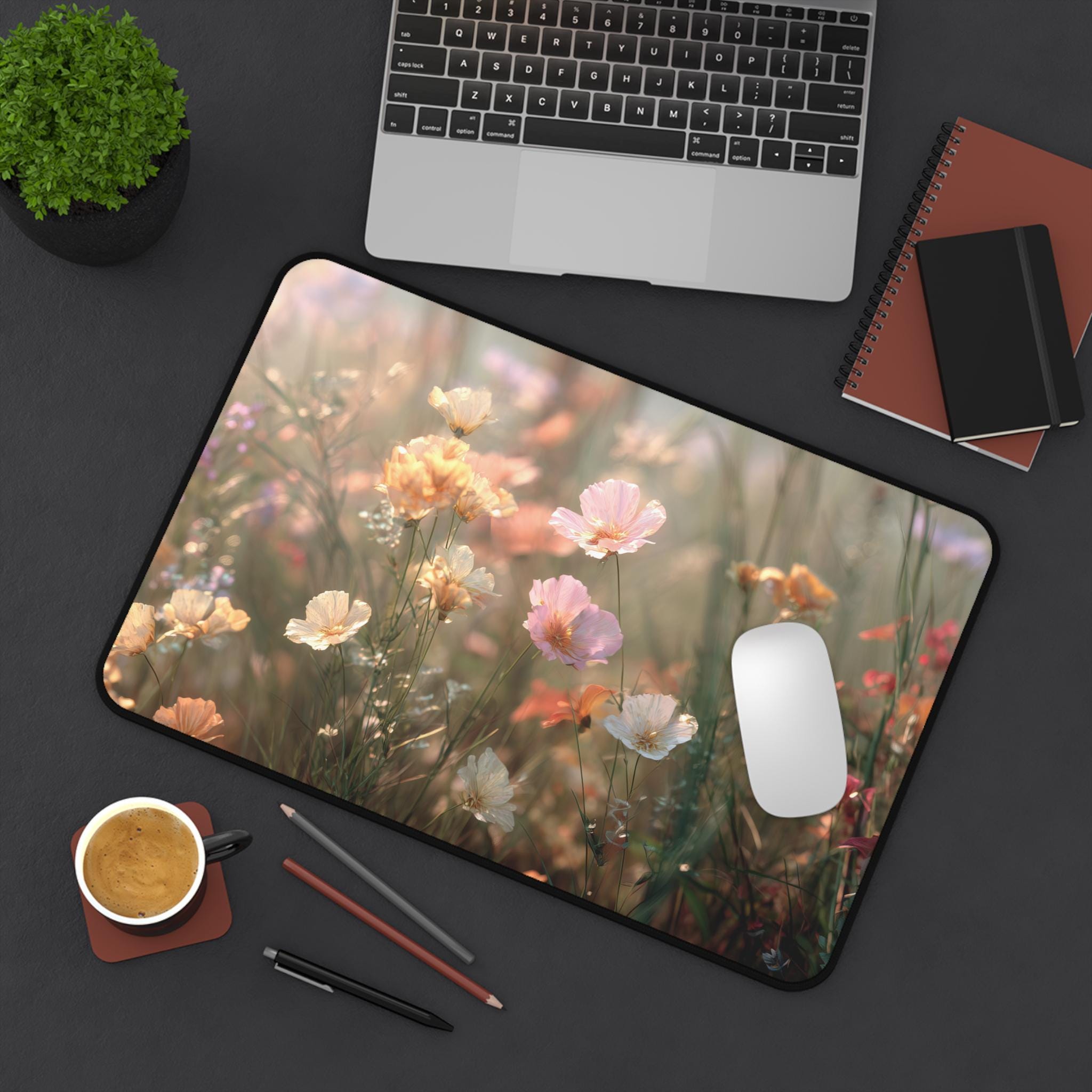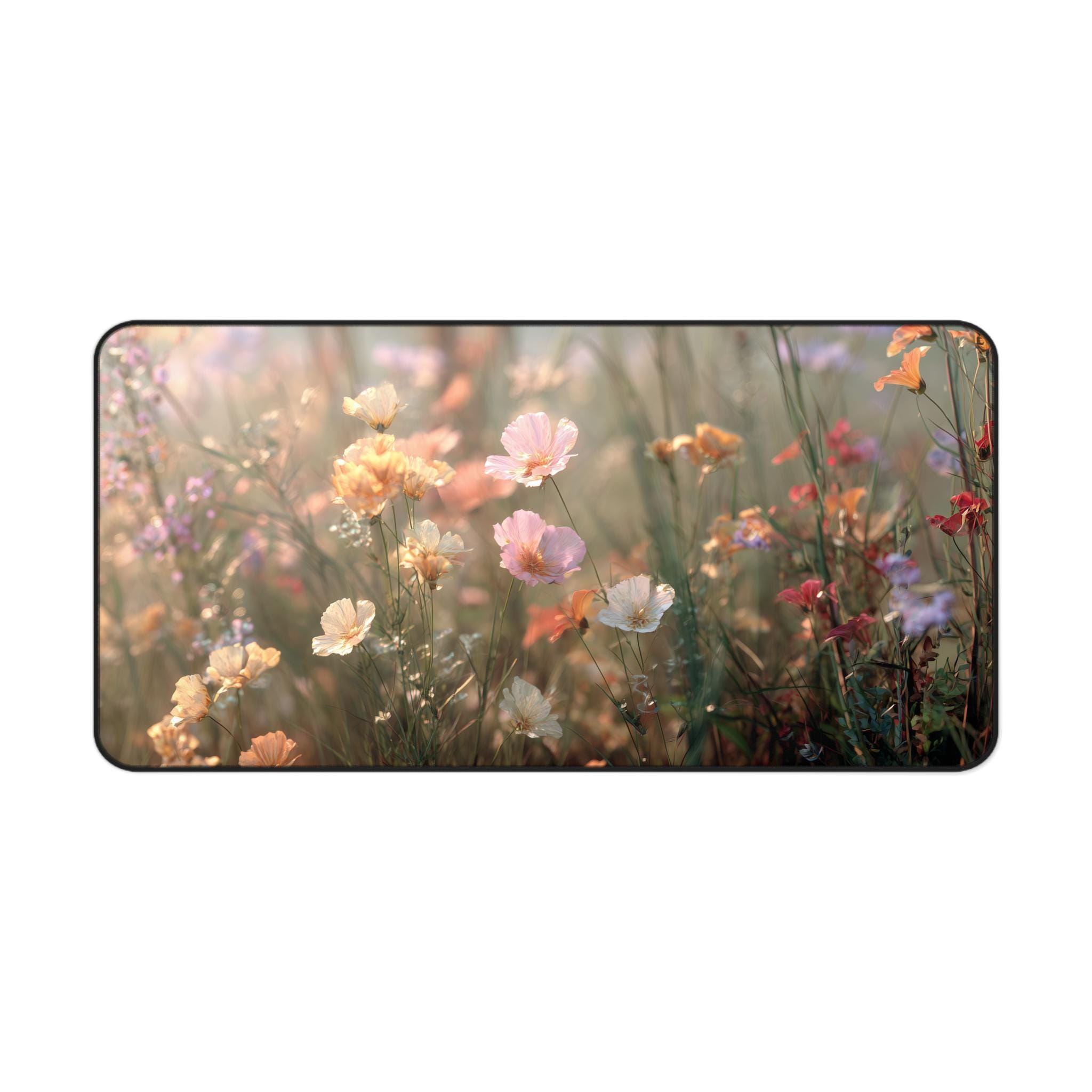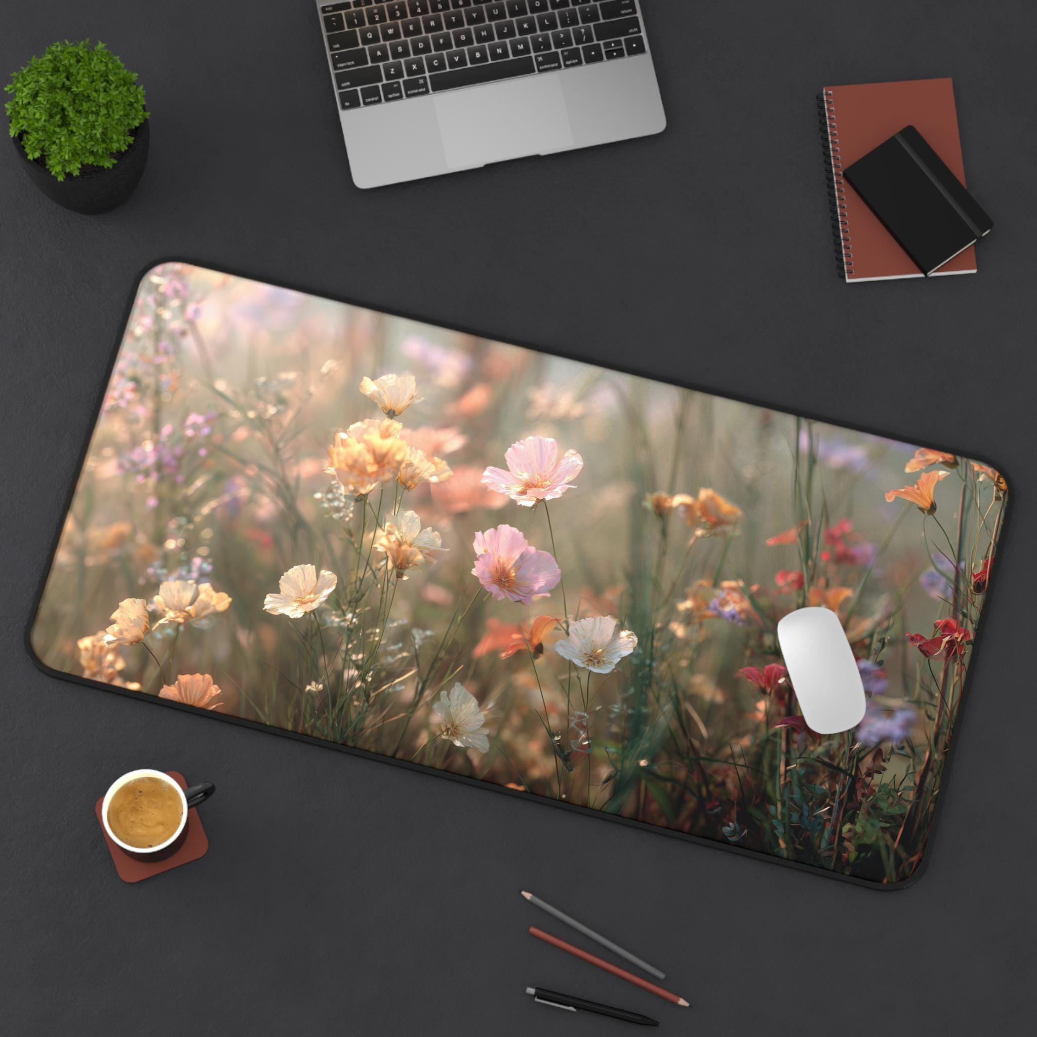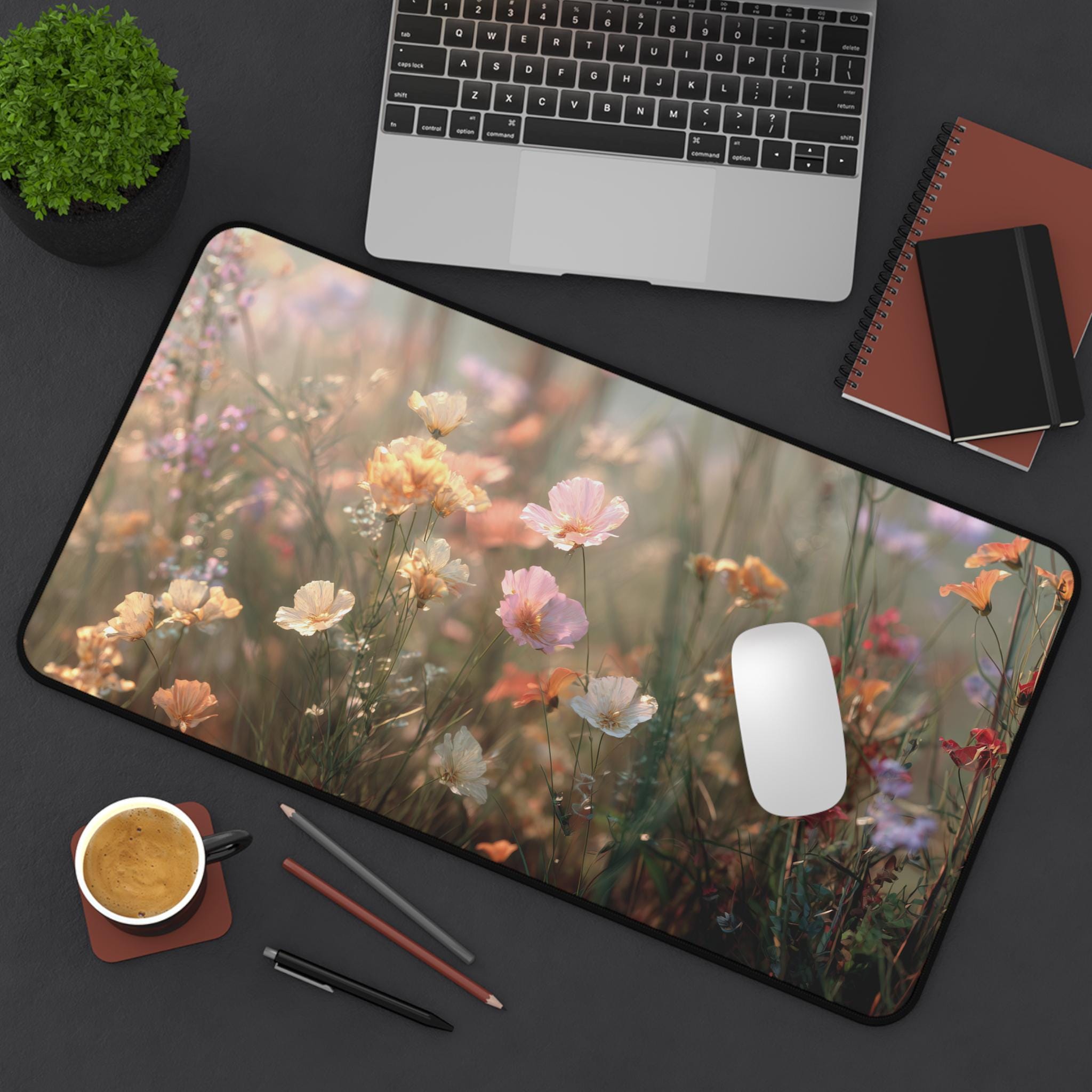 Soft Wildflower Desk Mat, Aesthetic Floral Mouse Pad XL, Cottagecore Desk Pad, Pastel Flower Office Decor, Gamer Desk Mat Gift for Her