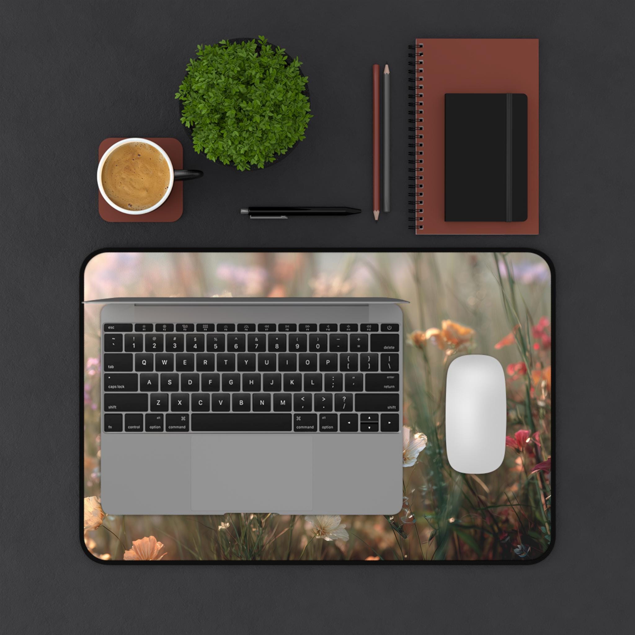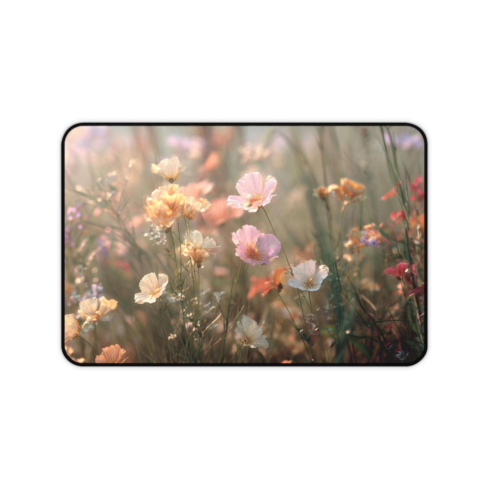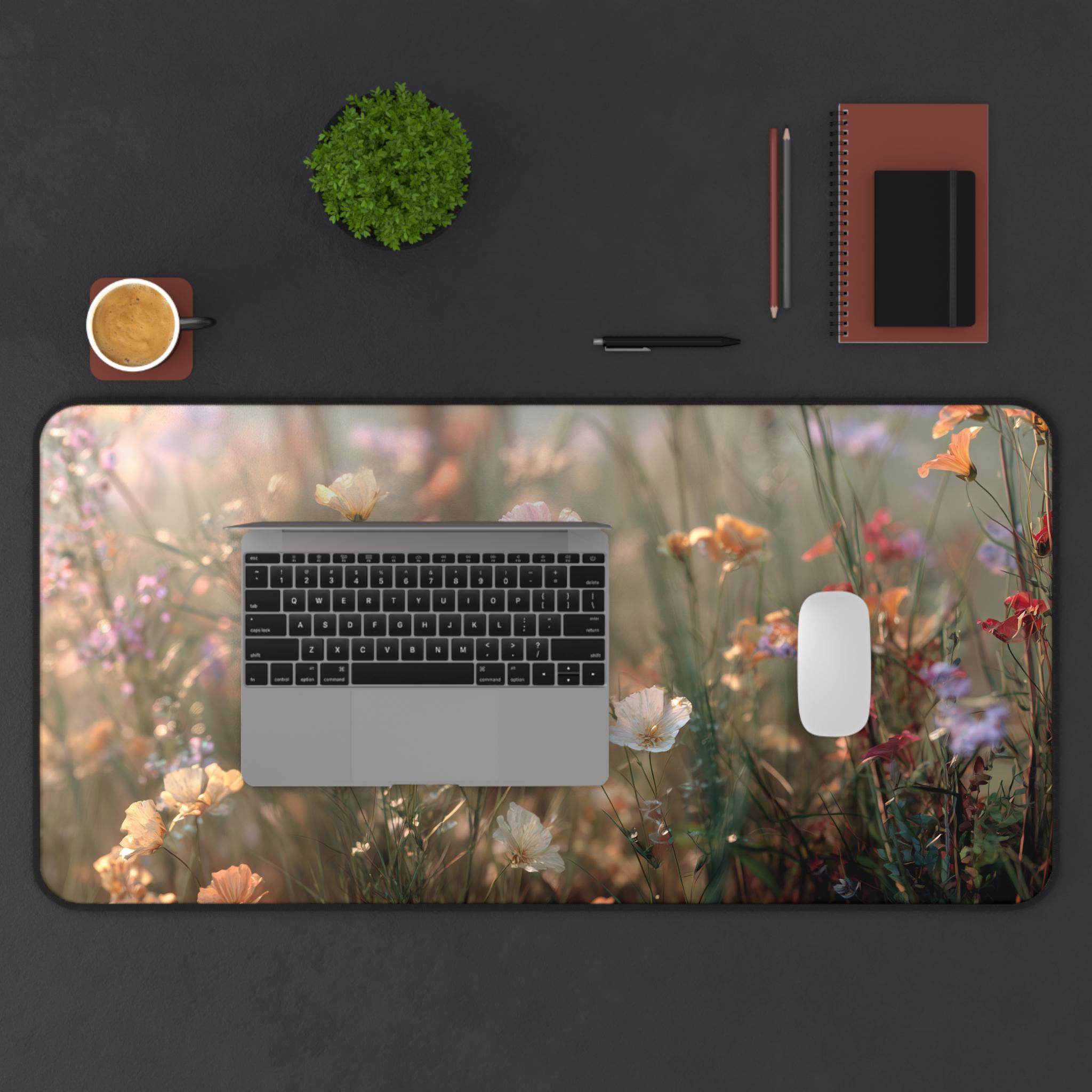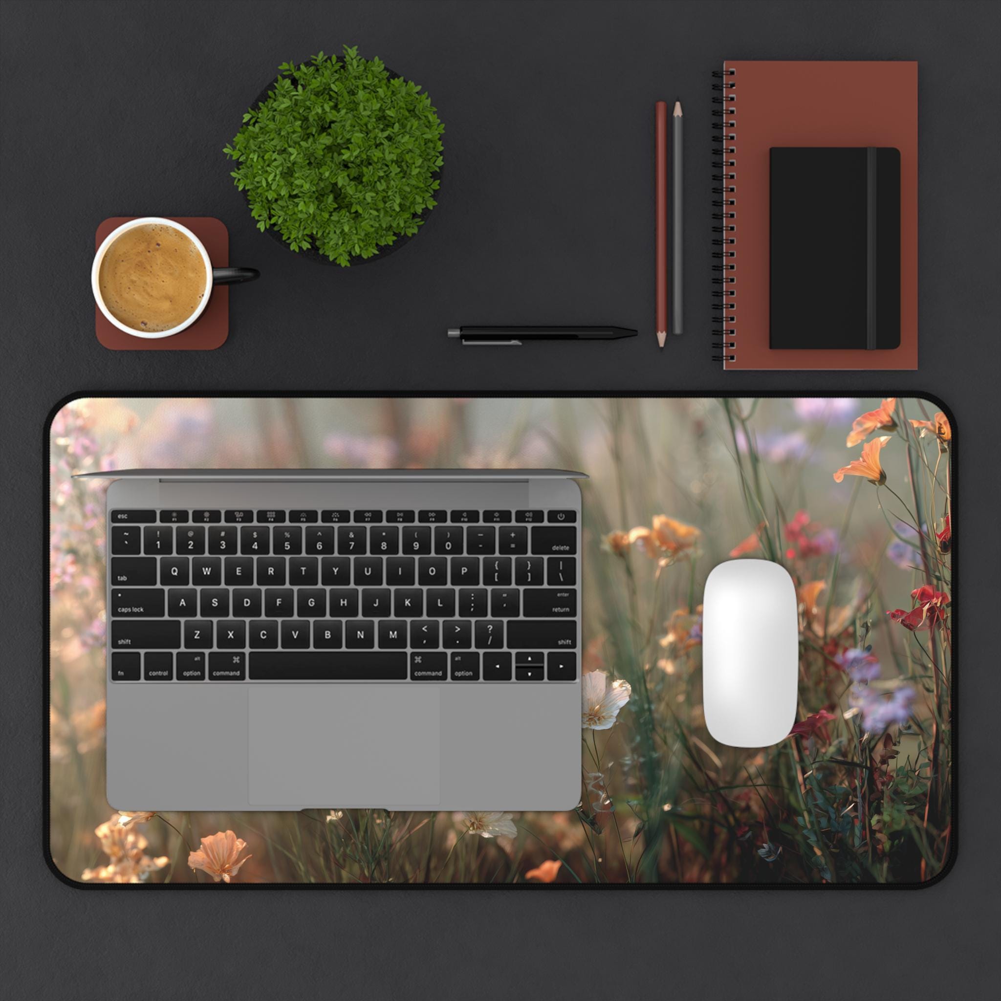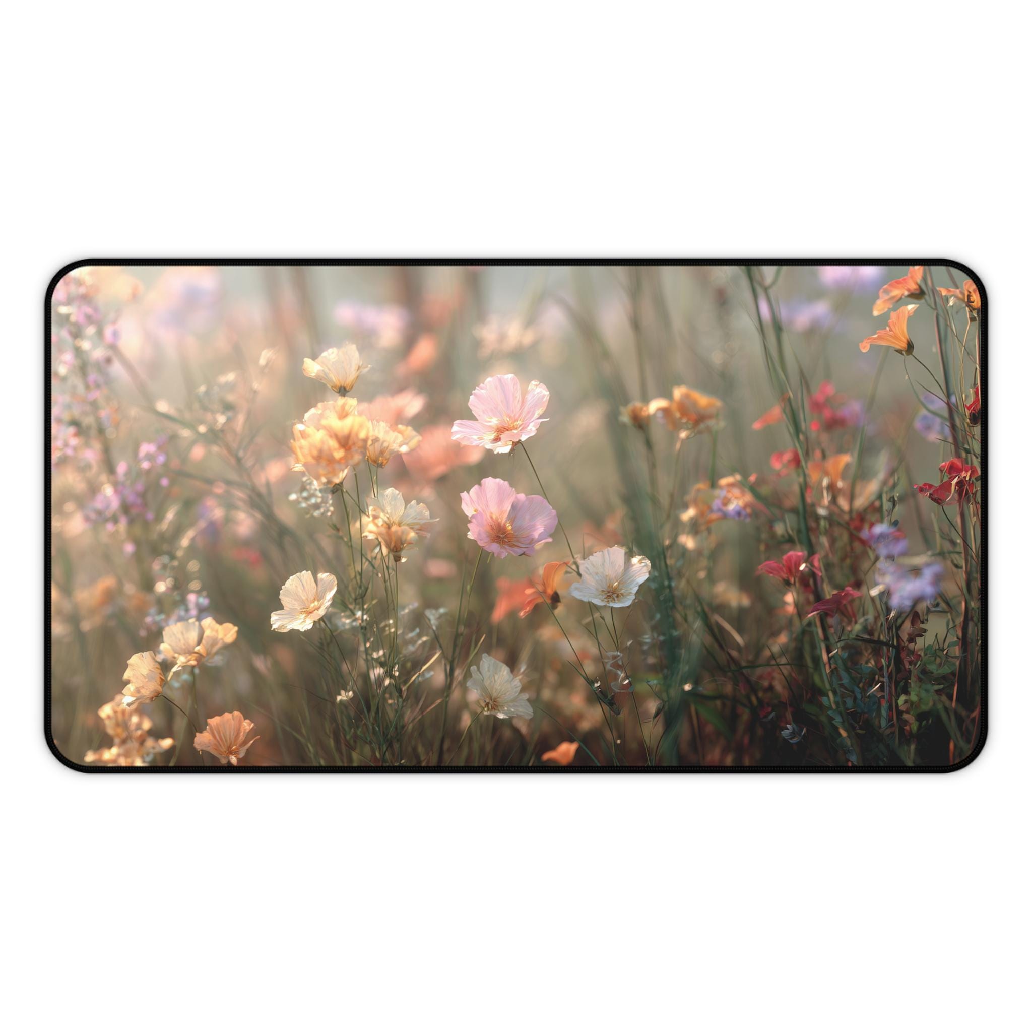 Soft Wildflower Desk Mat, Aesthetic Floral Mouse Pad XL, Cottagecore Desk Pad, Pastel Flower Office Decor, Gamer Desk Mat Gift for Her
